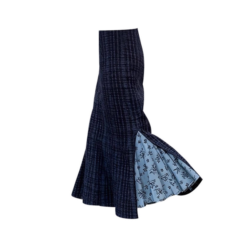 冬天配大衣的裙子重要场合漂亮高腰气质蓝色印花拼接鱼尾半身裙女