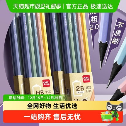 得力纽赛彩色杆铅笔HB小学生专用无铅毒2b黑木铅笔幼儿园初学者用