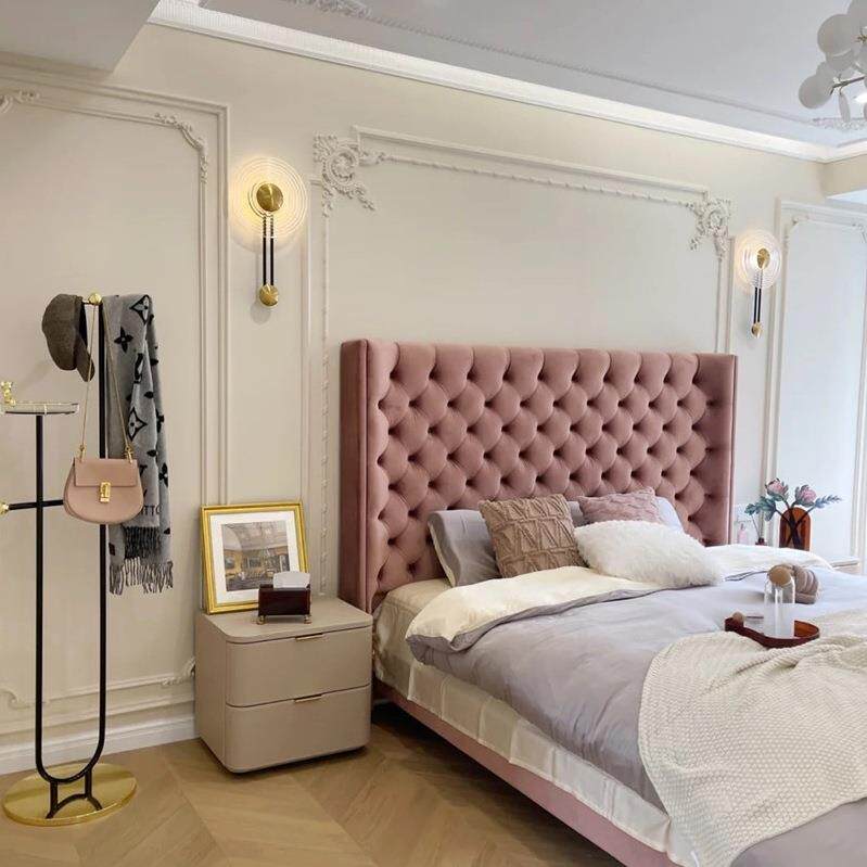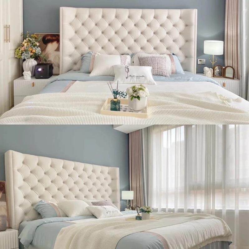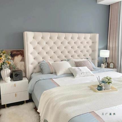 美式轻奢科技布双人床现代简约主卧高靠背床北欧网红拉扣丝绒婚床