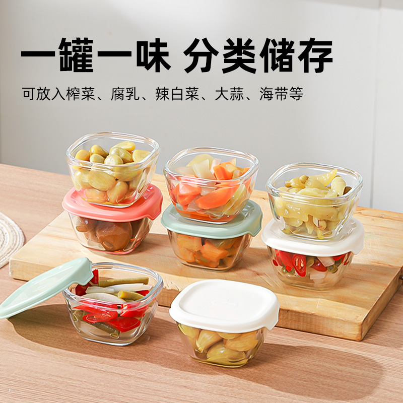 咸菜密封罐玻璃保鲜盒食品级带盖迷你饭盒泡菜小菜专用冰箱收纳盒