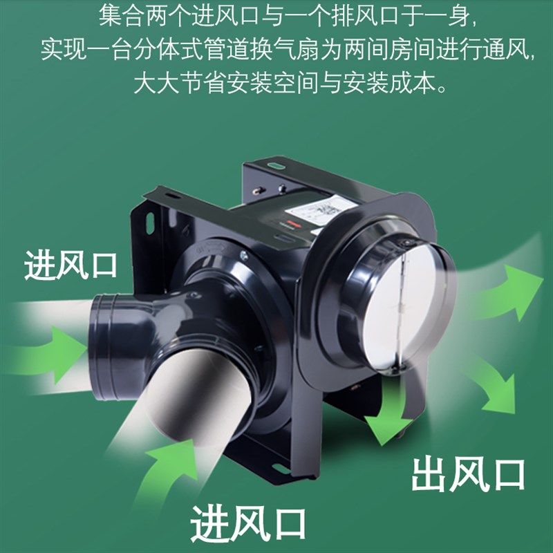 绿岛风低音分体管道风机低音一拖二抽风酒店卫生间换气扇强力排风