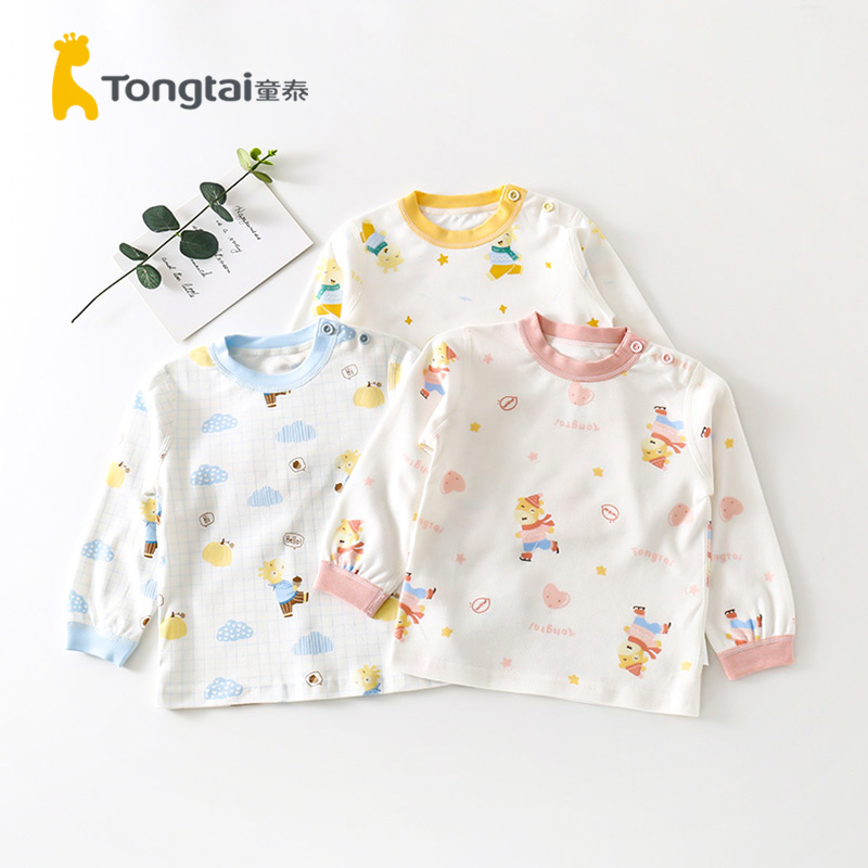 童泰婴儿内衣纯棉秋衣肩开上衣