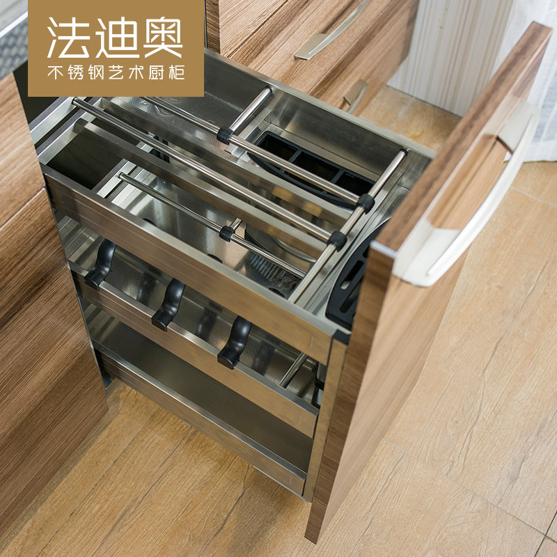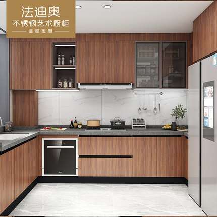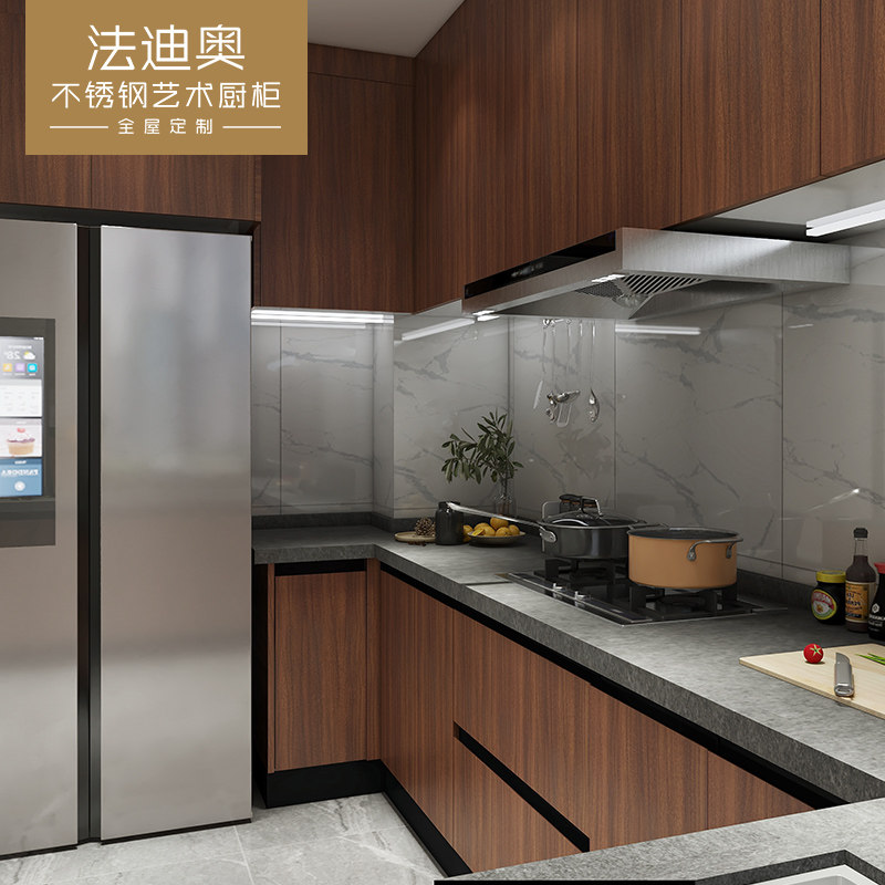 法迪奥新中式不锈钢橱柜定制橱柜家用厨房石英石台面订制整体定做