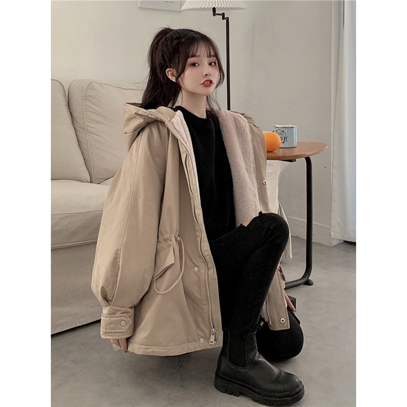 300斤大码女装学院风连帽棉服秋冬新款加绒加厚保暖连帽棉衣外套