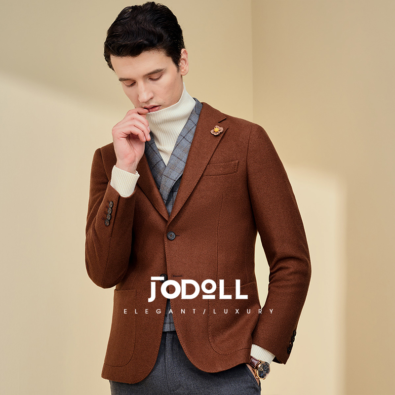 JODOLL乔顿咖色正装单西英伦商务休闲修身西服男绵羊毛小西装外套