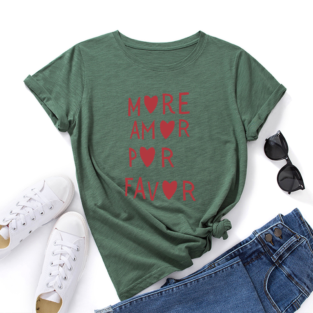 欧美女装Women T-shirt纯棉宽松薄款短袖圆领t恤女字母心型