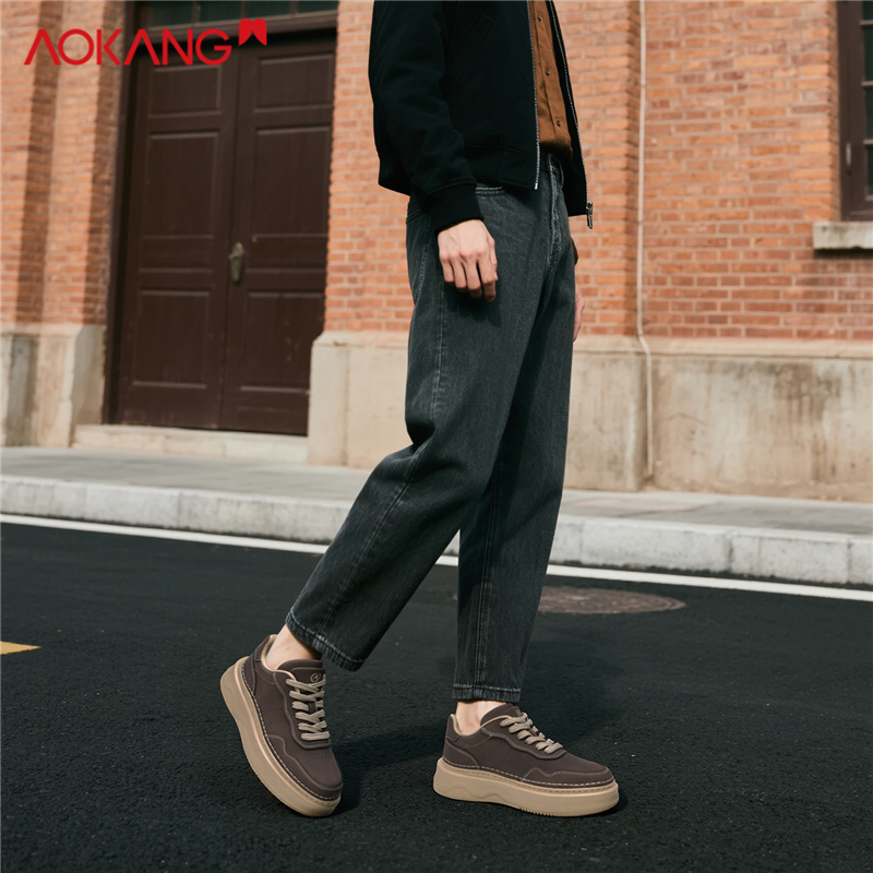 奥康男鞋2025新款冬季高级感百搭休闲鞋青少年真皮防滑土黄板鞋男