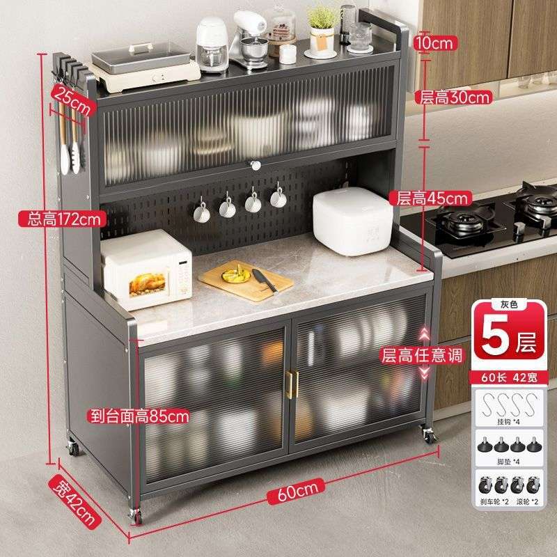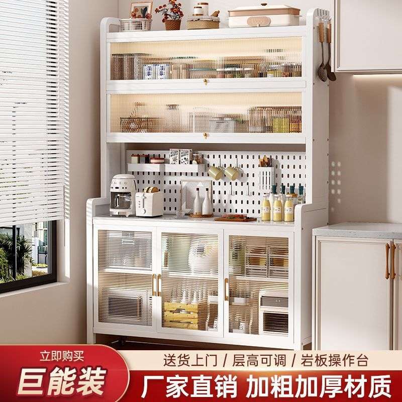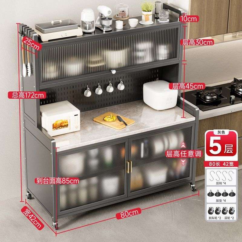 新款厨房置物架落地多层餐边柜岩板切菜桌多功能微波炉烤箱收纳柜