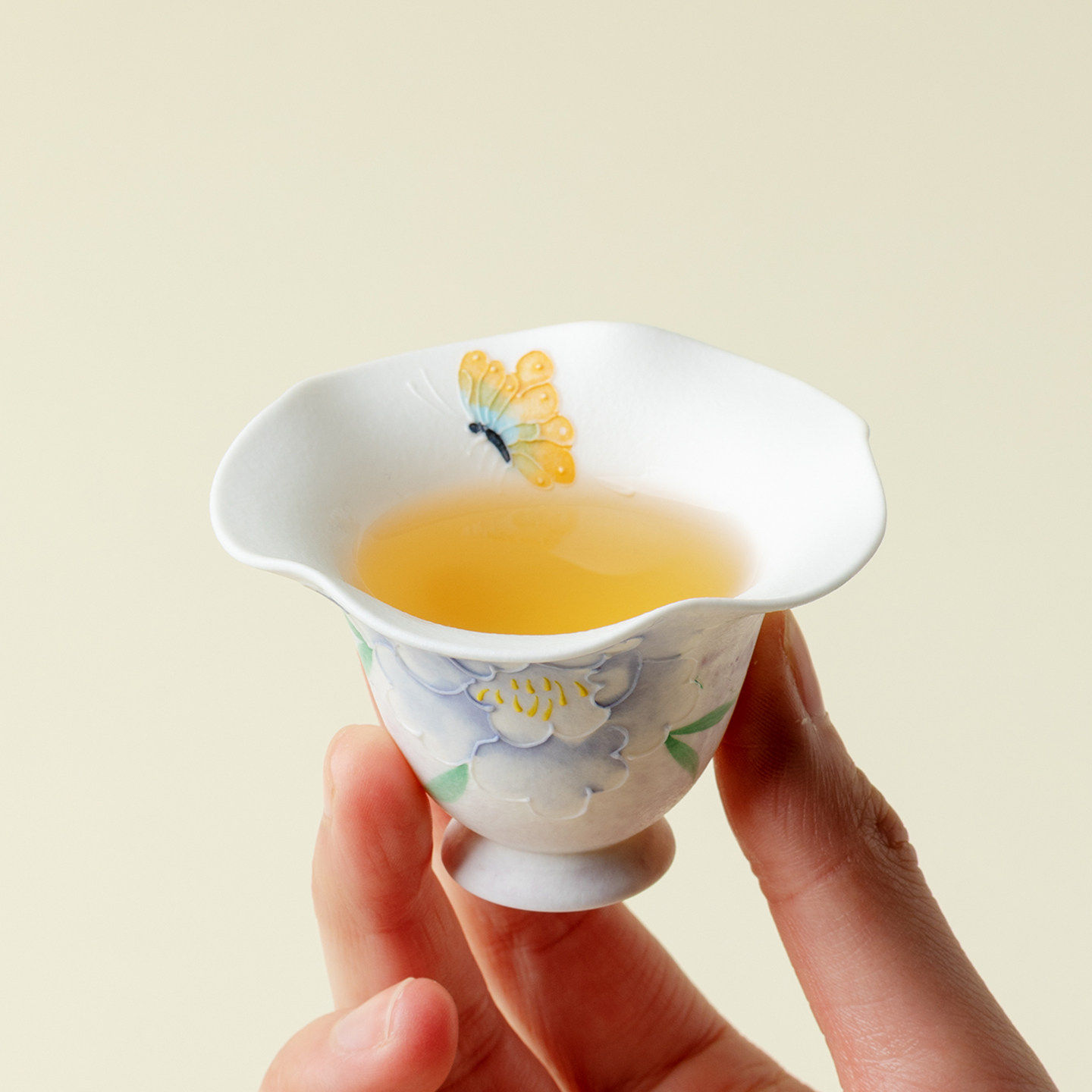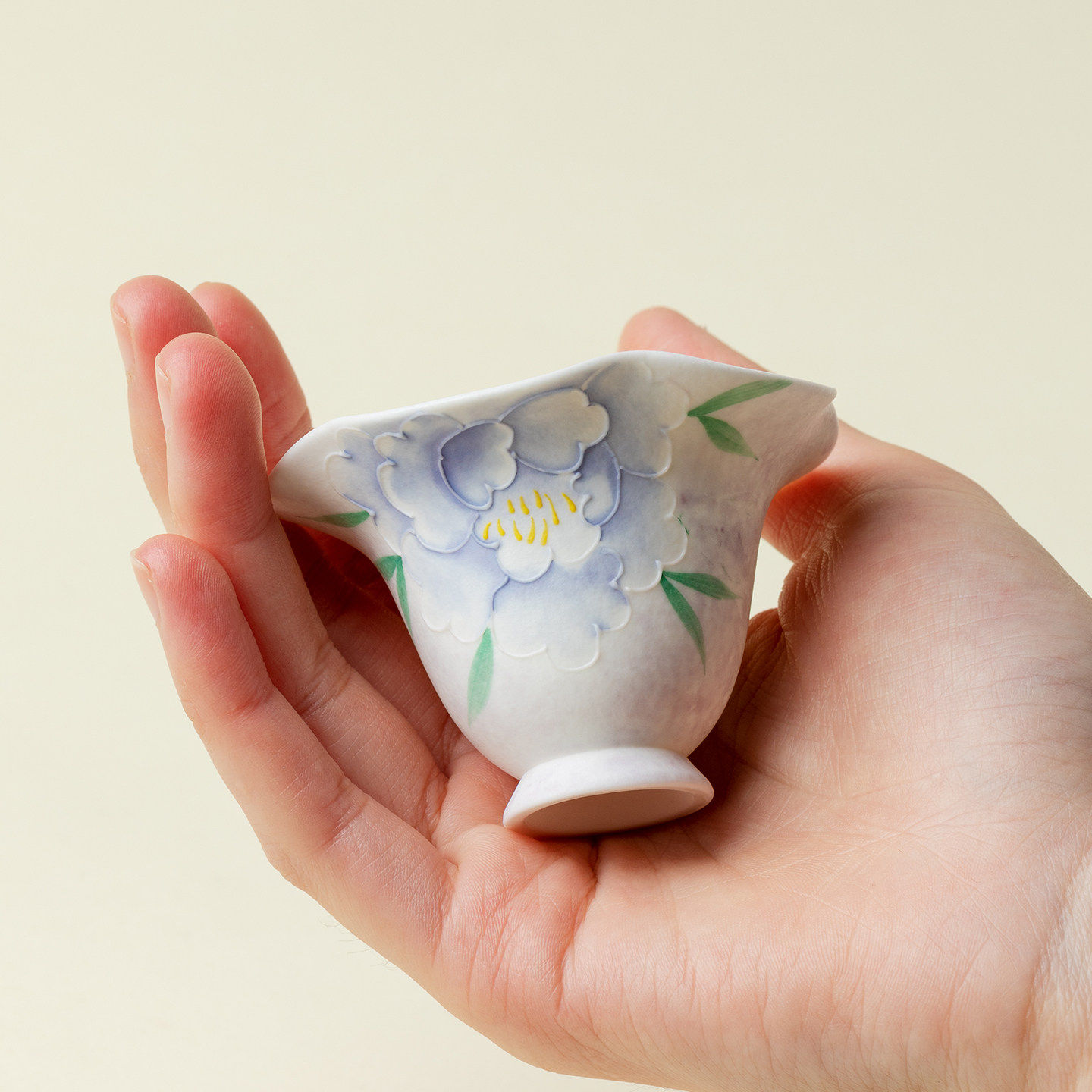 里作创意手工粉彩品茗杯富贵吉祥手绘紫牡丹花茶杯陶瓷茶具主人杯