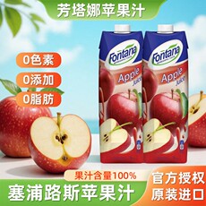 塞浦路斯进口fontana芳塔娜100%苹果汁无添加1L*2轻食果蔬汁饮料