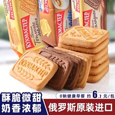俄罗斯饼干厨房大师牌牛奶味巧克力味0钠微甜酥性零食多口味饼干