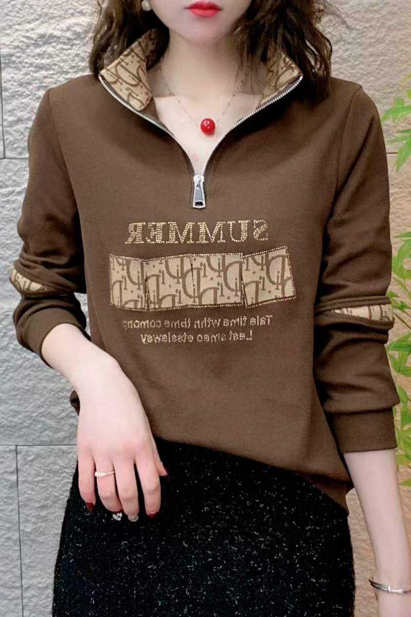 新款减龄半拉链休闲上衣时尚宽松