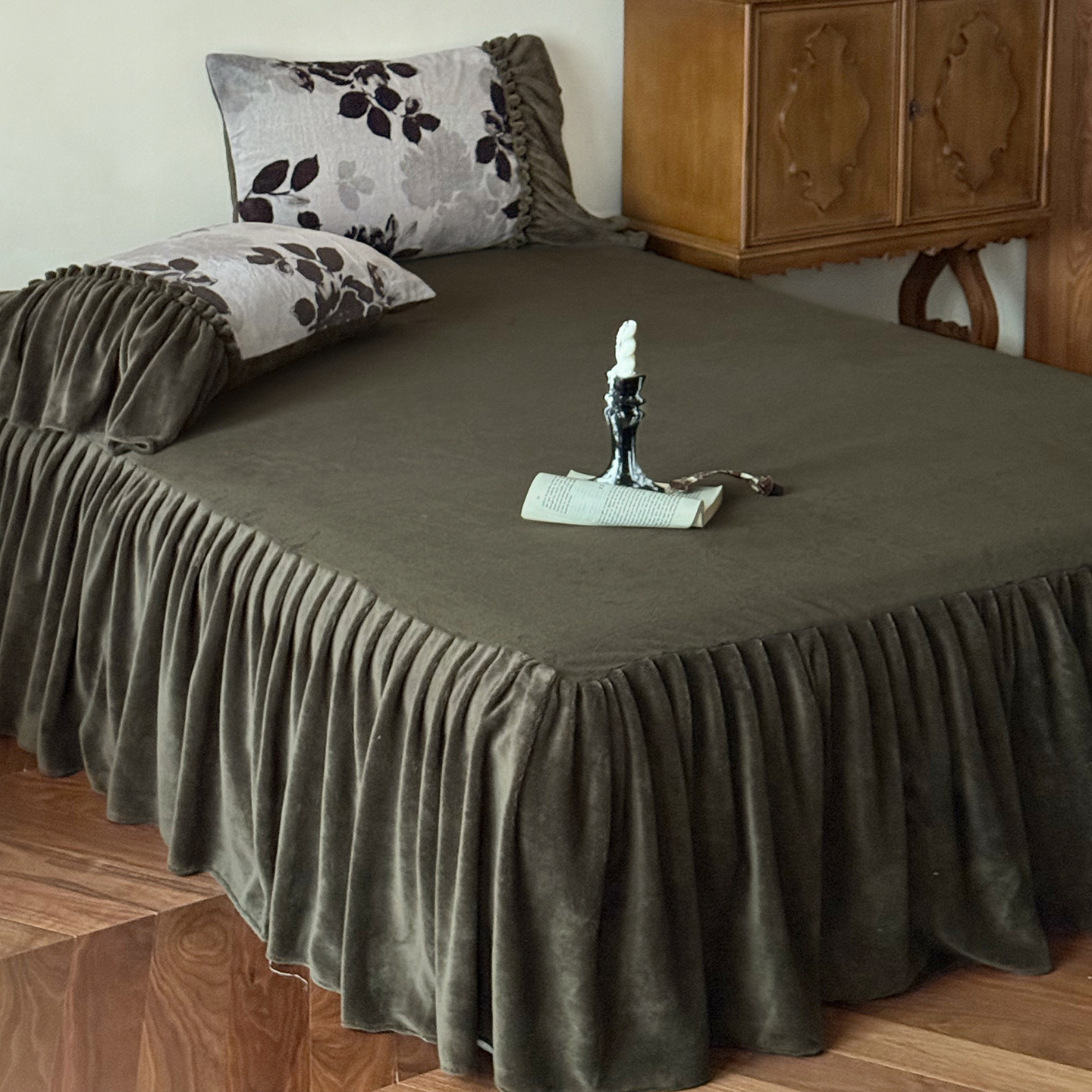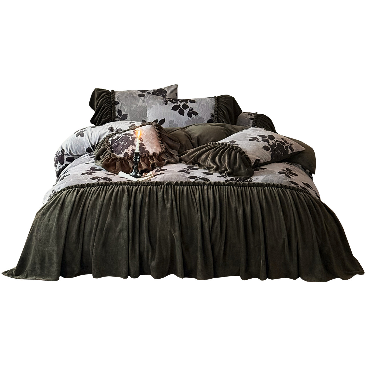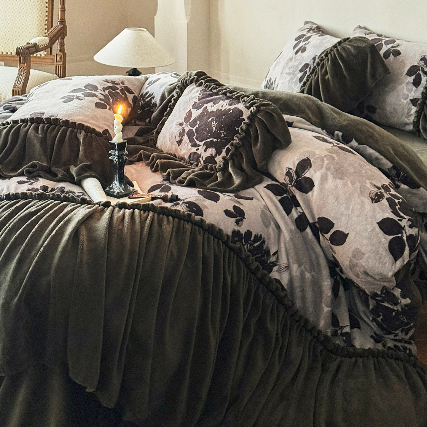 法式中古风花卉牛奶绒加厚四件套印花被套珊瑚绒床裙保暖冬季床品