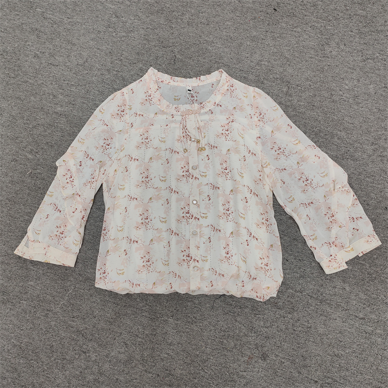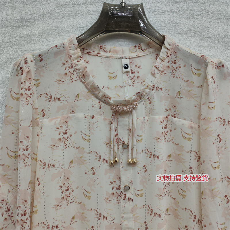 SL2536时尚亮丝雪纺印花衬衫木须袖花边圆领妈妈时尚百搭春夏小衫