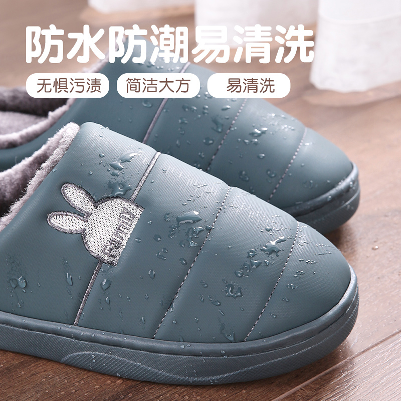 男士棉拖鞋男冬季家居保暖室内防水厚底毛毛绒居家用棉鞋女秋冬天