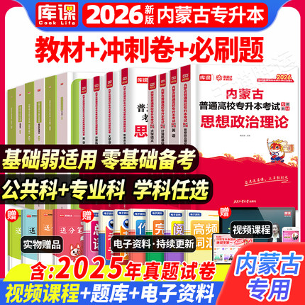 库课新版2026年内蒙古专升本考试专用教材必刷题真题试卷必刷2000题英语文政治计算机高等数学一二统招网课视频复习资料库克2025