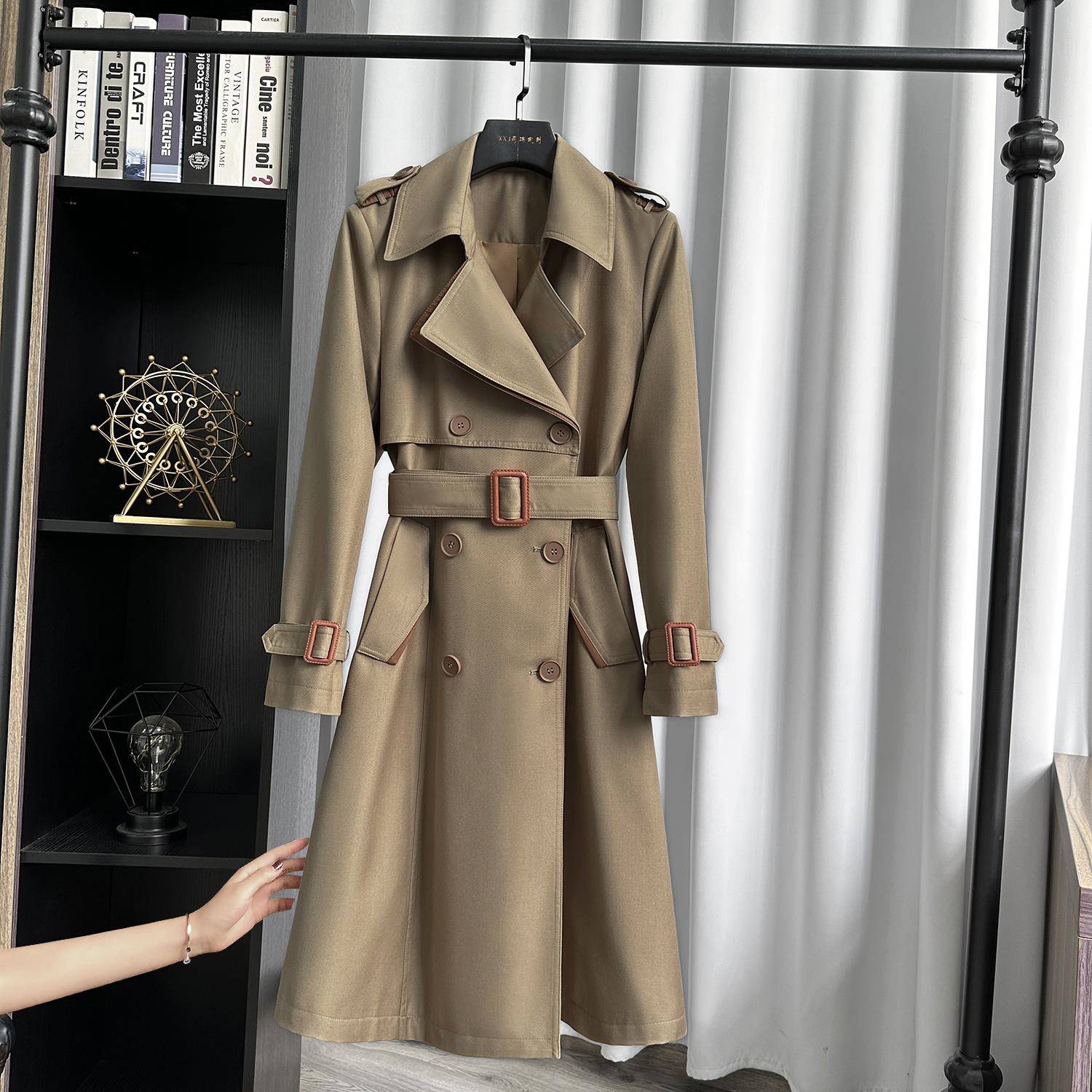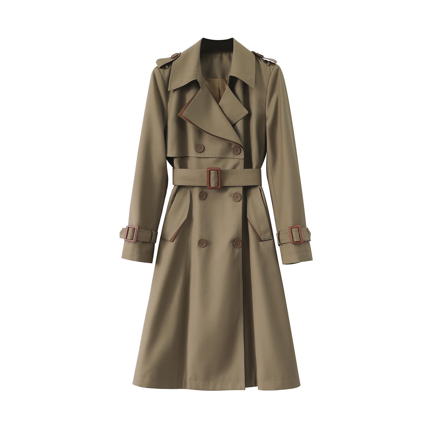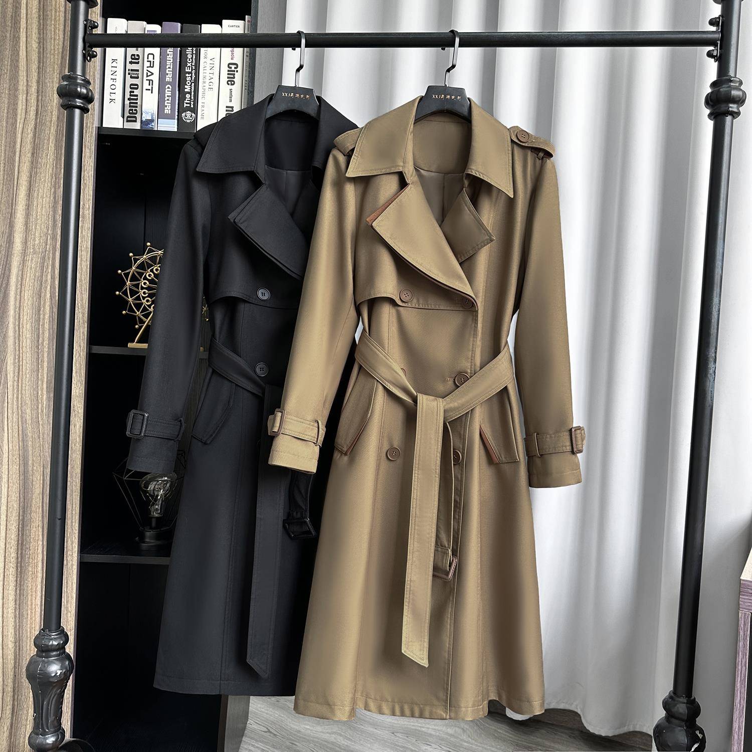 2025秋季新款纯色系腰带中长款风衣外套女过膝双排扣气质高端显瘦