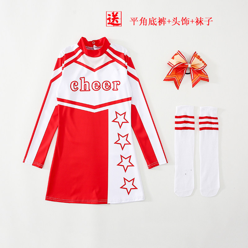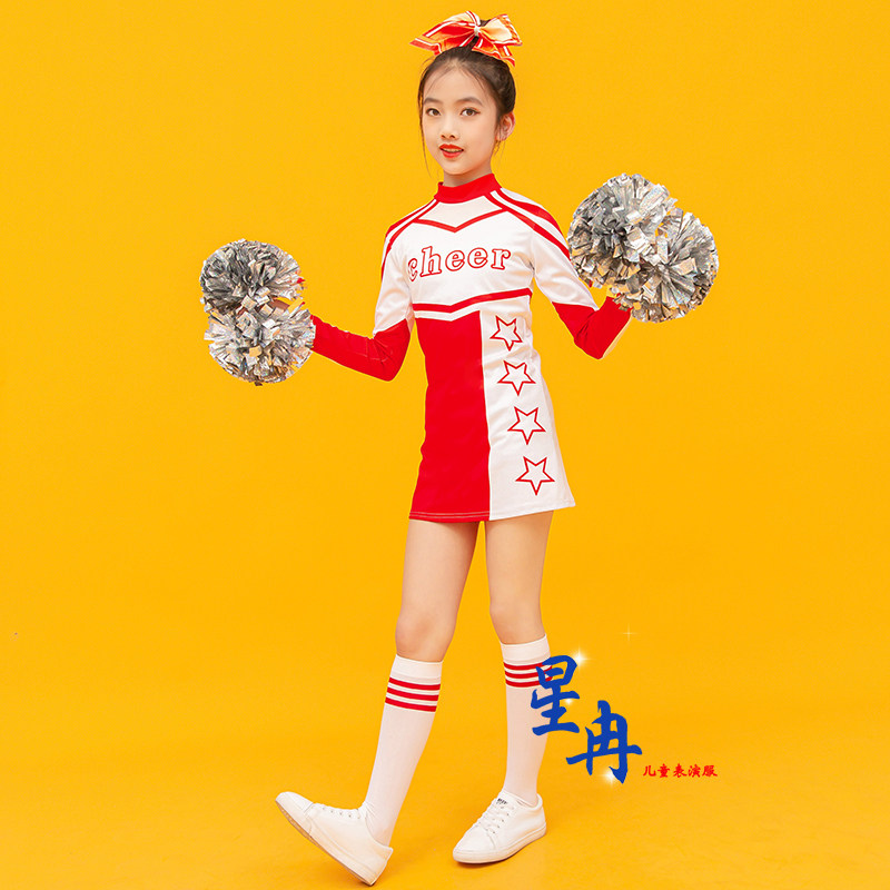 新款啦啦队队服舞蹈服装儿童男女长袖啦啦操竞技运动会演出服成人