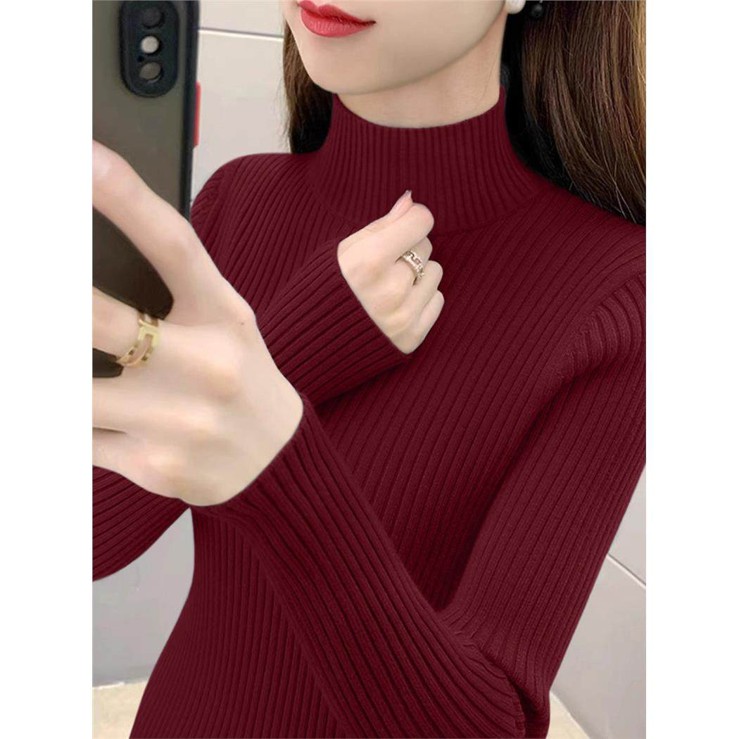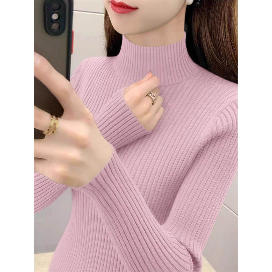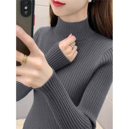 深灰色半高领毛衣修身内搭打底上衣加厚款长袖针织衫春季新款女装