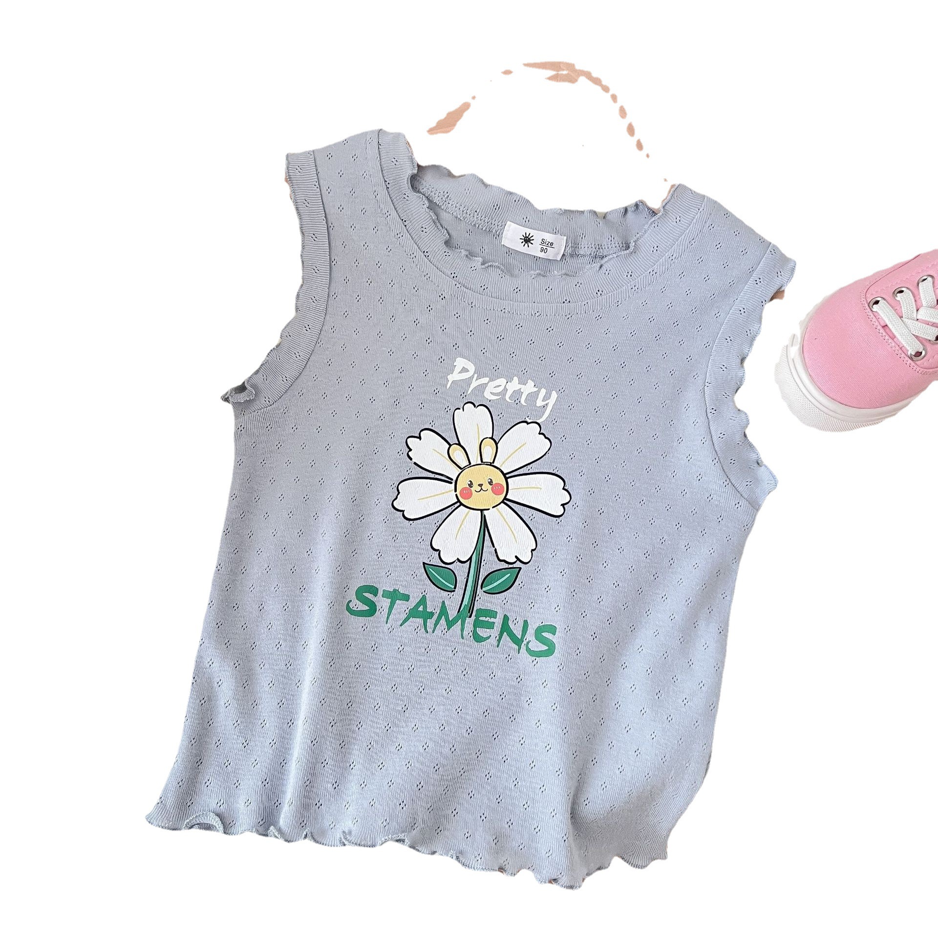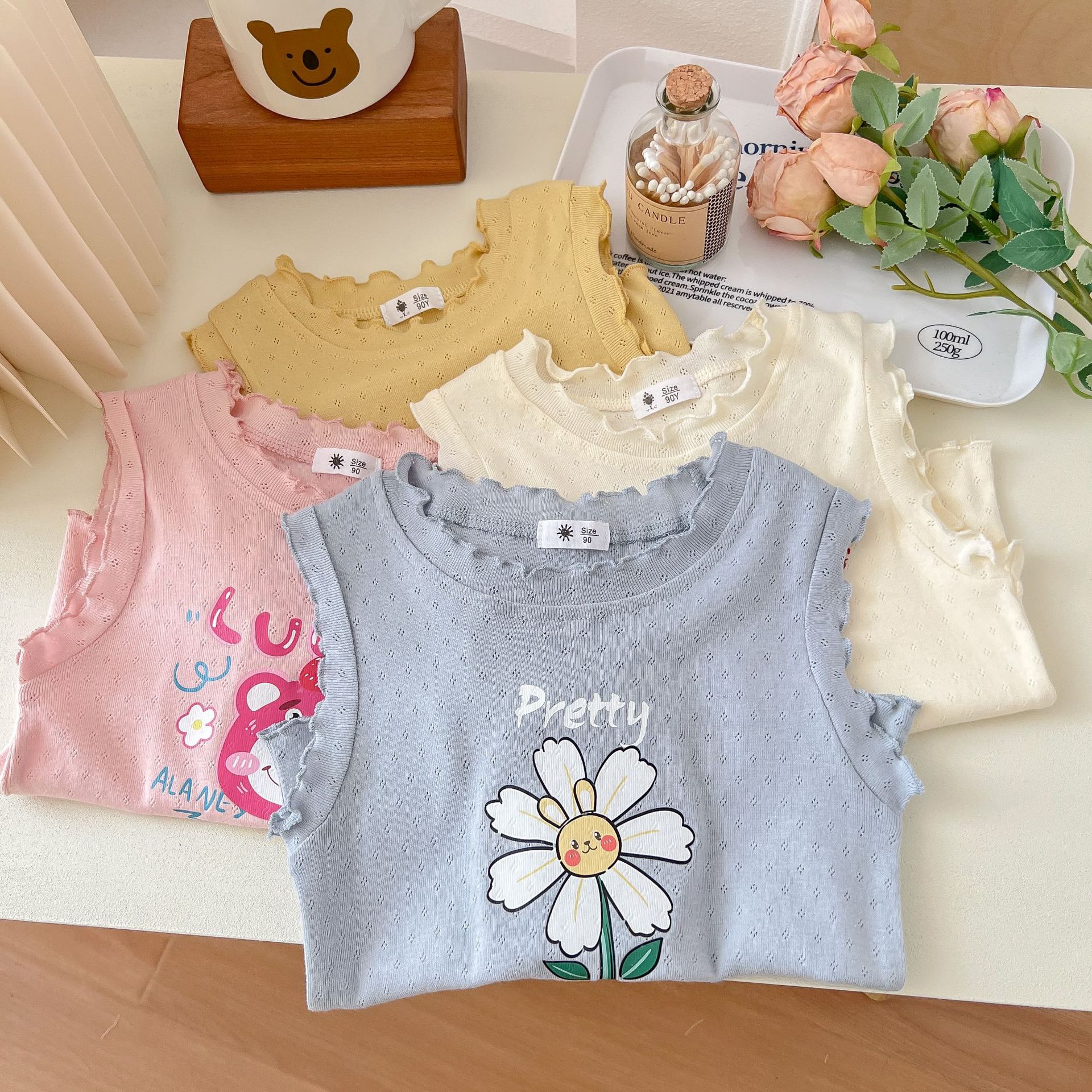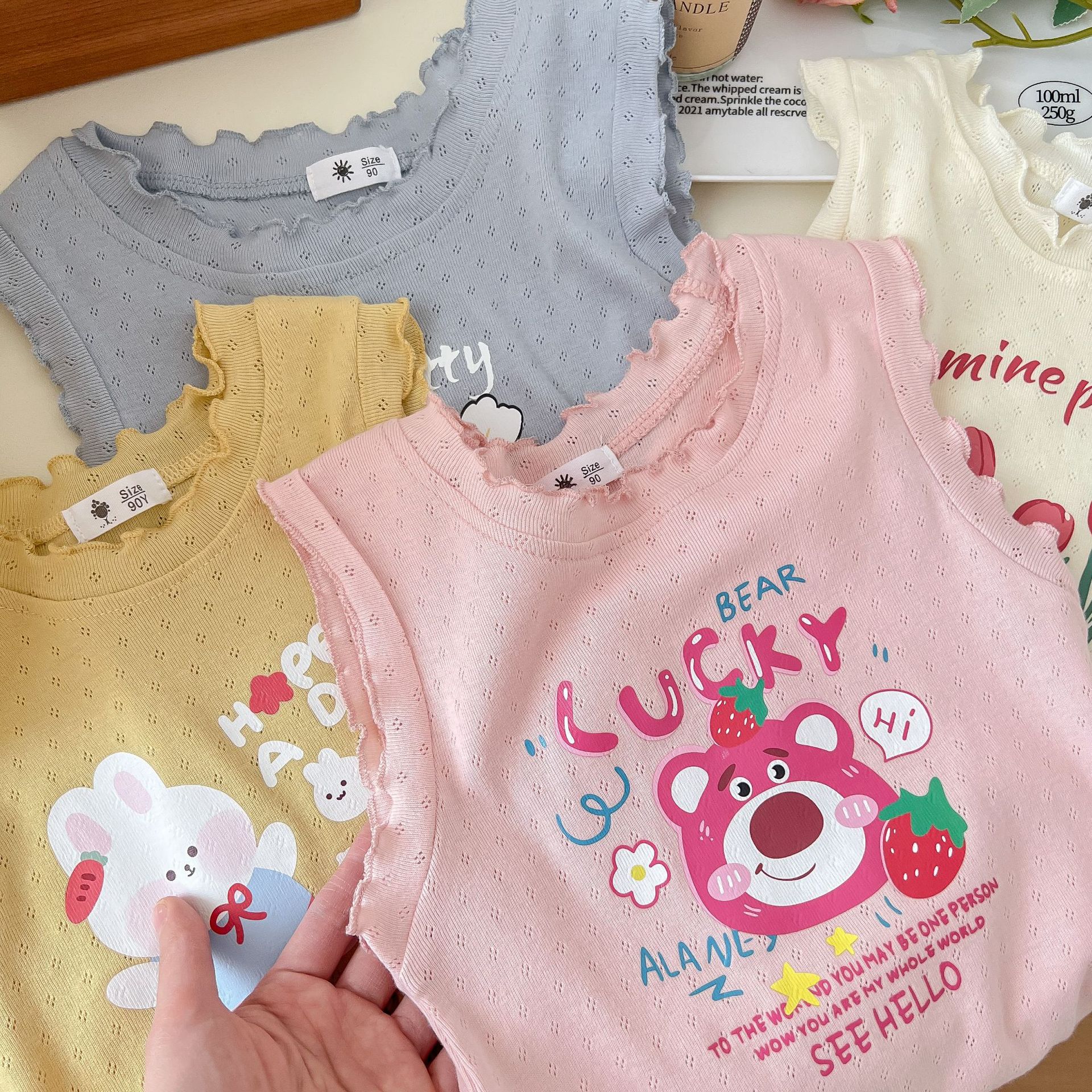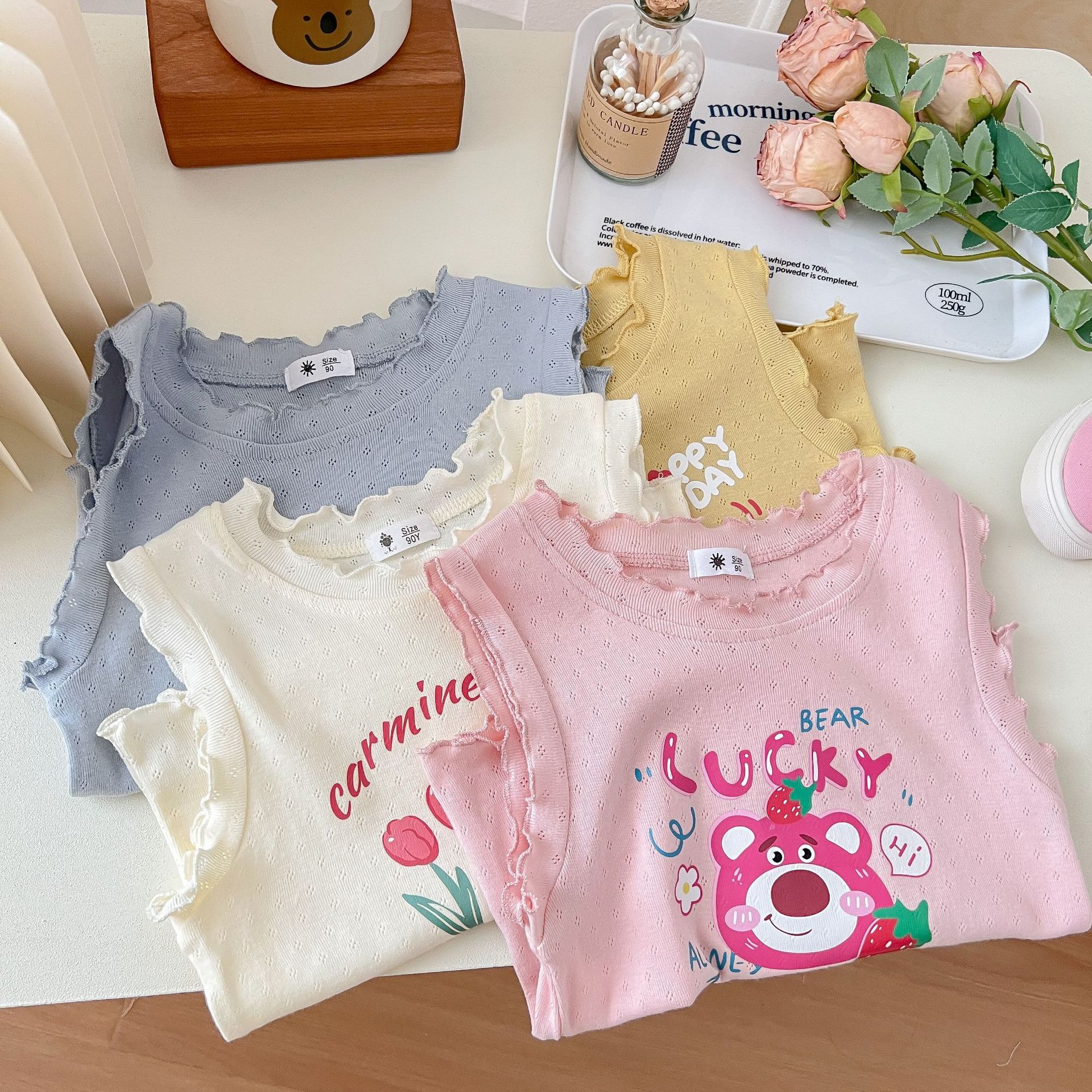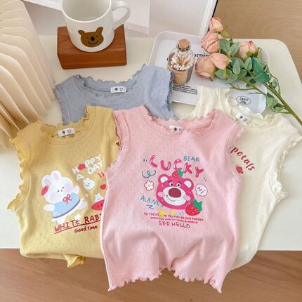 吸汗透气棉 2025夏季新品女童纯棉背心草莓熊上衣女宝宝打底无袖T
