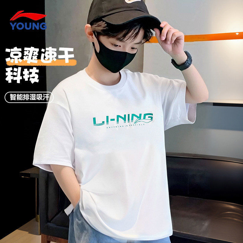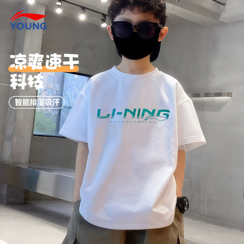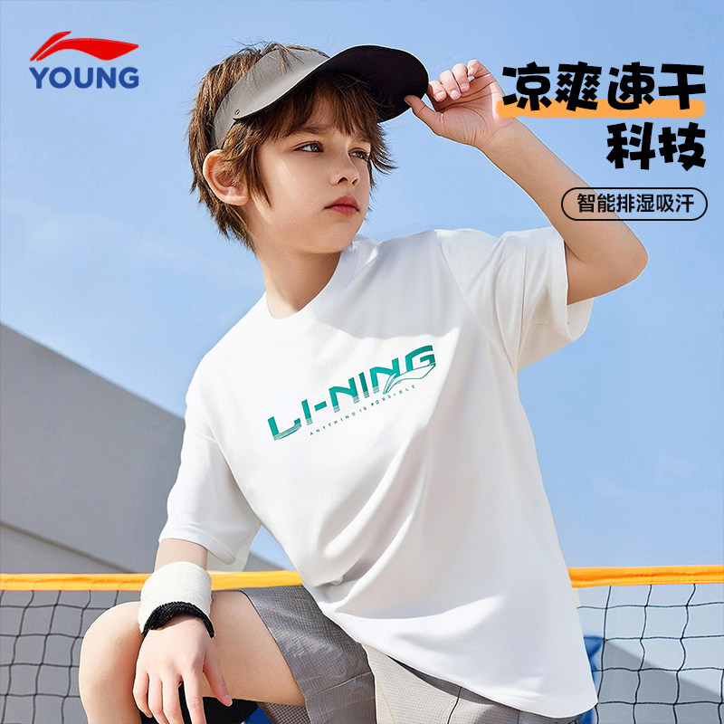 李宁男童短袖t恤2025夏季新款大童速干排湿冰感半袖儿童运动夏装
