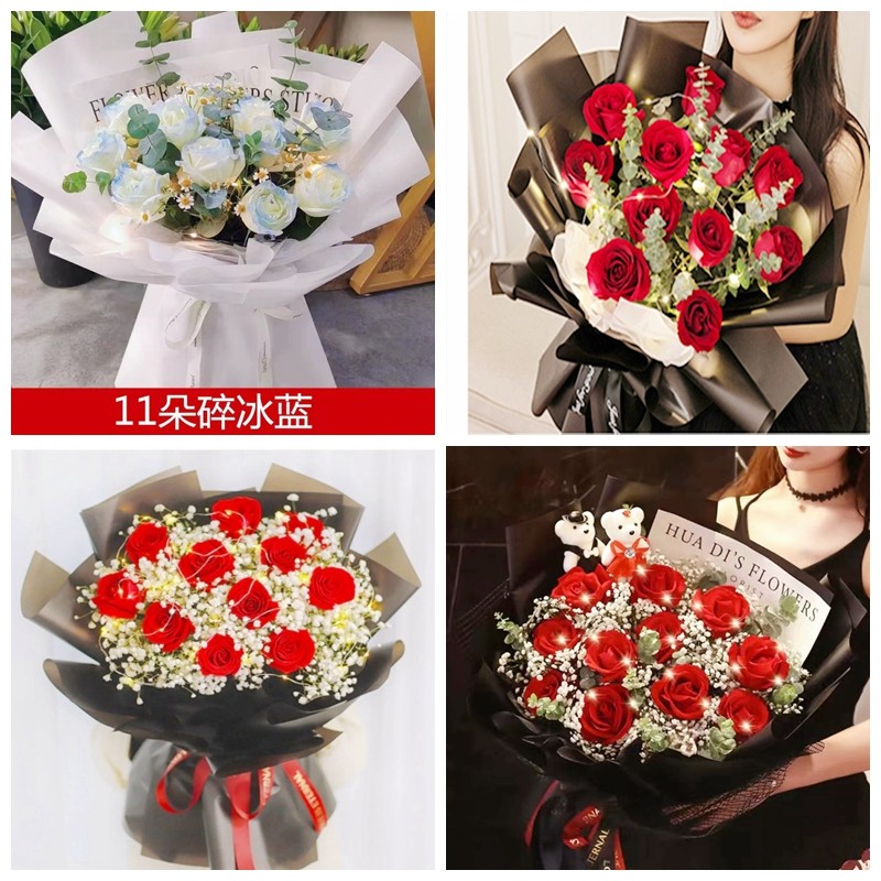 临夏州积石山东乡县和政县生日碎冰蓝红玫瑰花束同城鲜花店表白