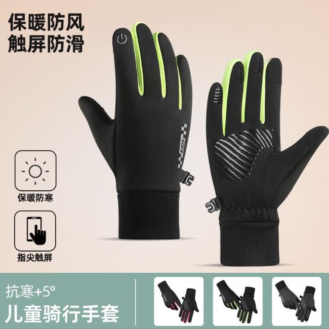 儿童秋冬季加绒户外骑车亲子防水防风保暖手套男孩女童平衡车防滑