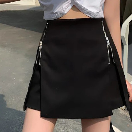 大码黑色裤裙女夏季新款半身裙高腰胖mm学生显瘦a字拉链阔腿短裤