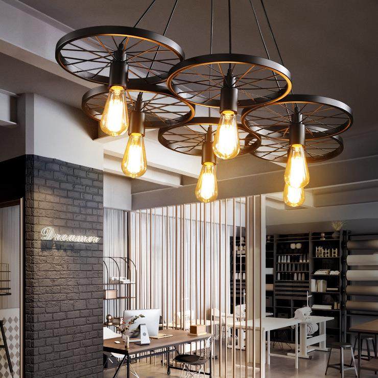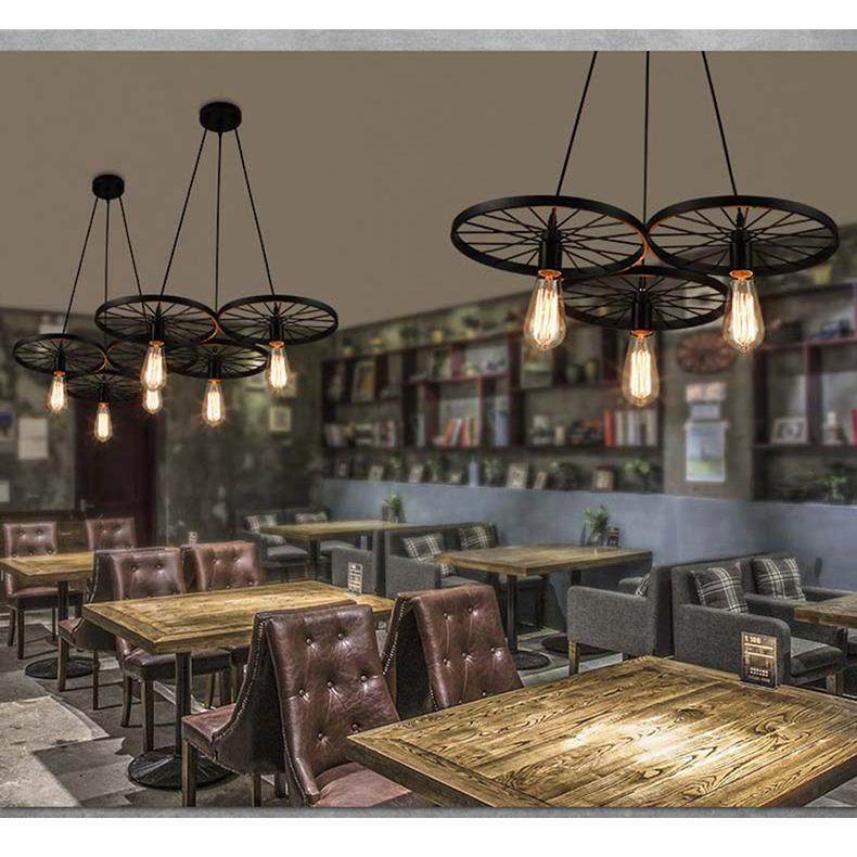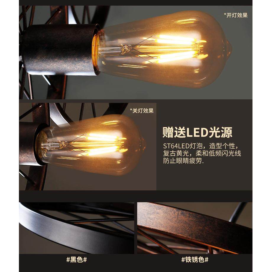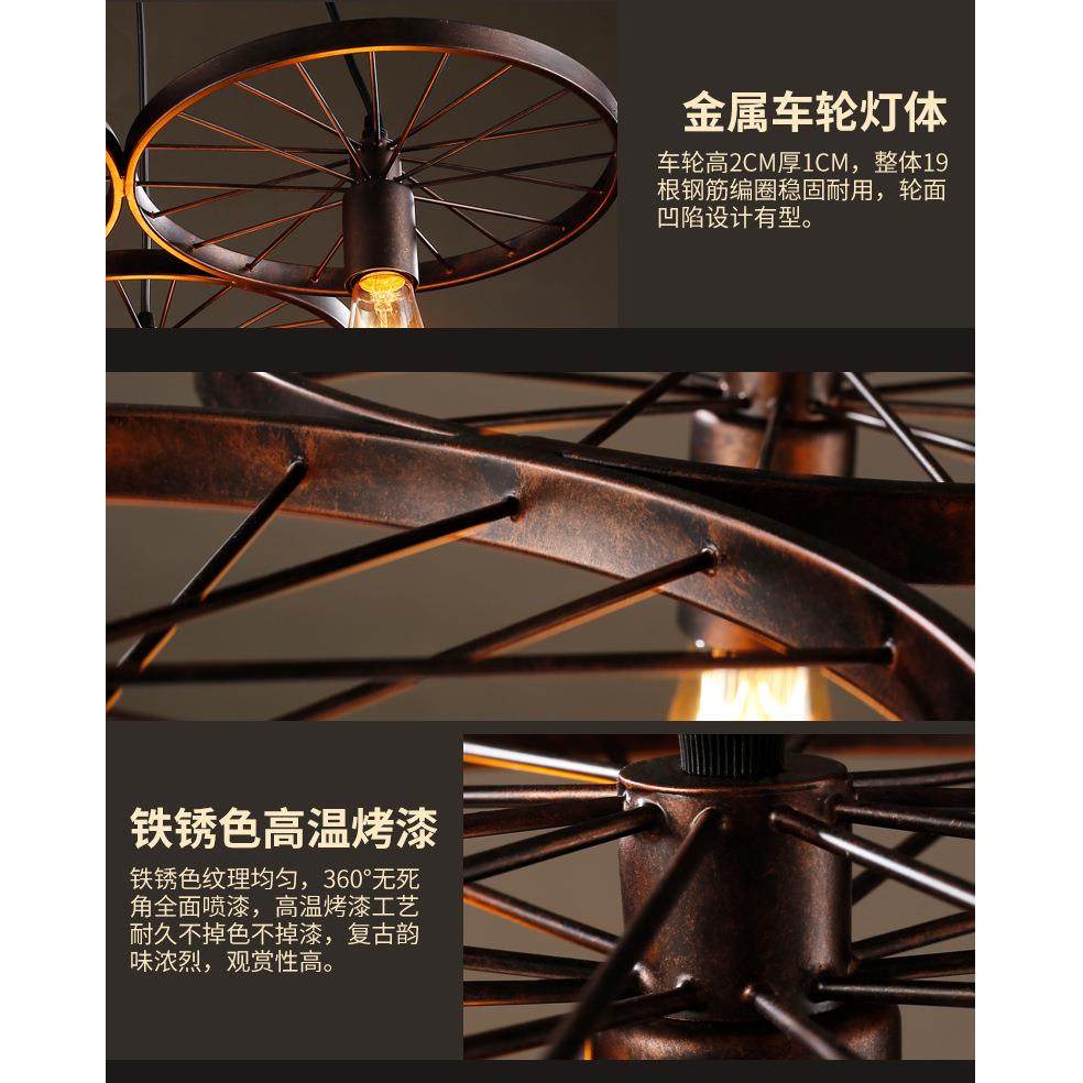 工业风吊灯loft个性创意餐厅铁艺酒吧网咖复古怀旧车轮灯具