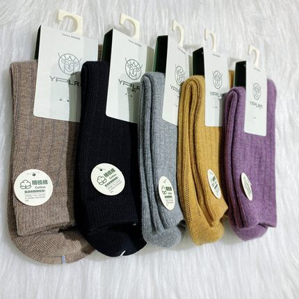 吉林鹿人秋冬女袜子中厚双针纯色中高筒纯黑无骨四季保暖棉袜3019