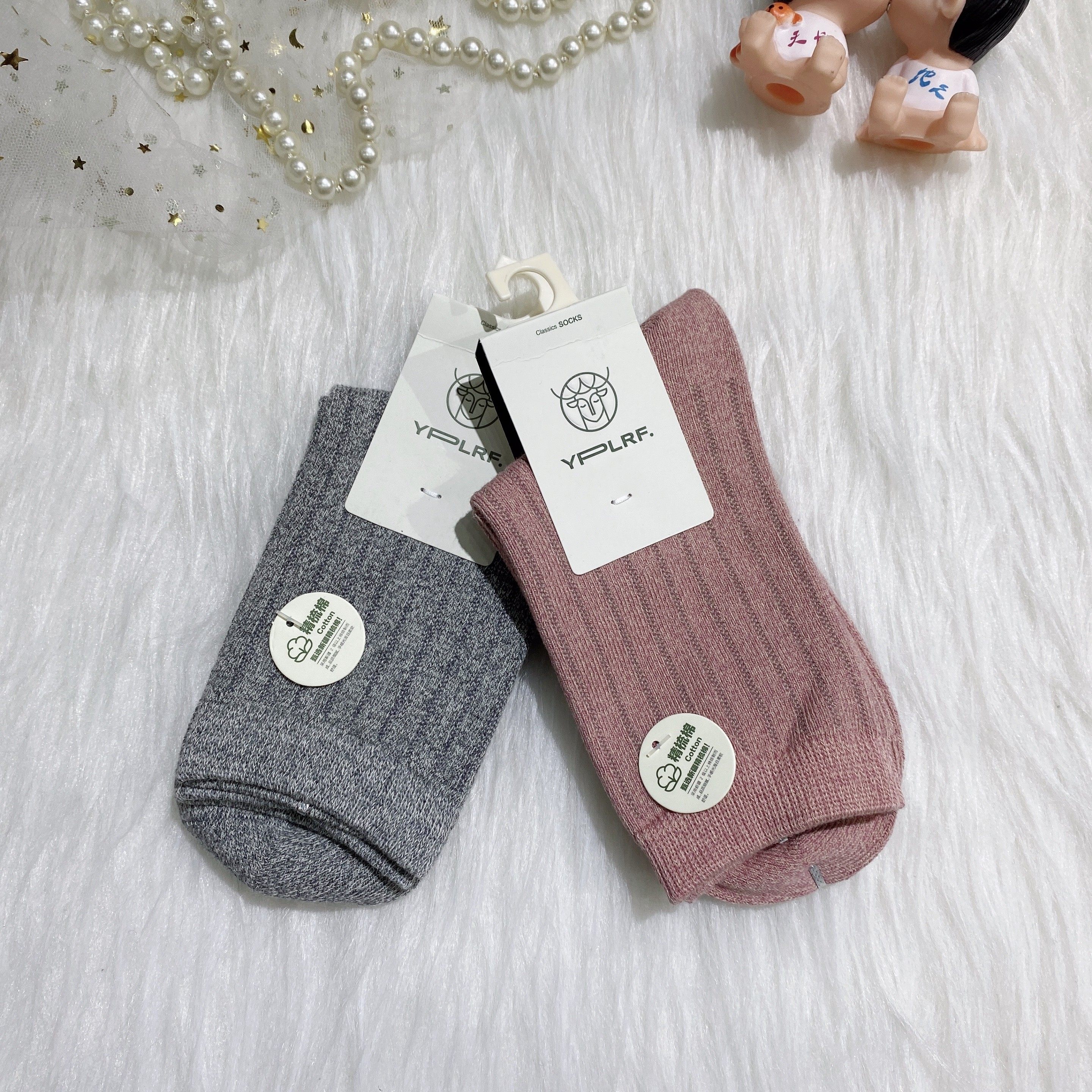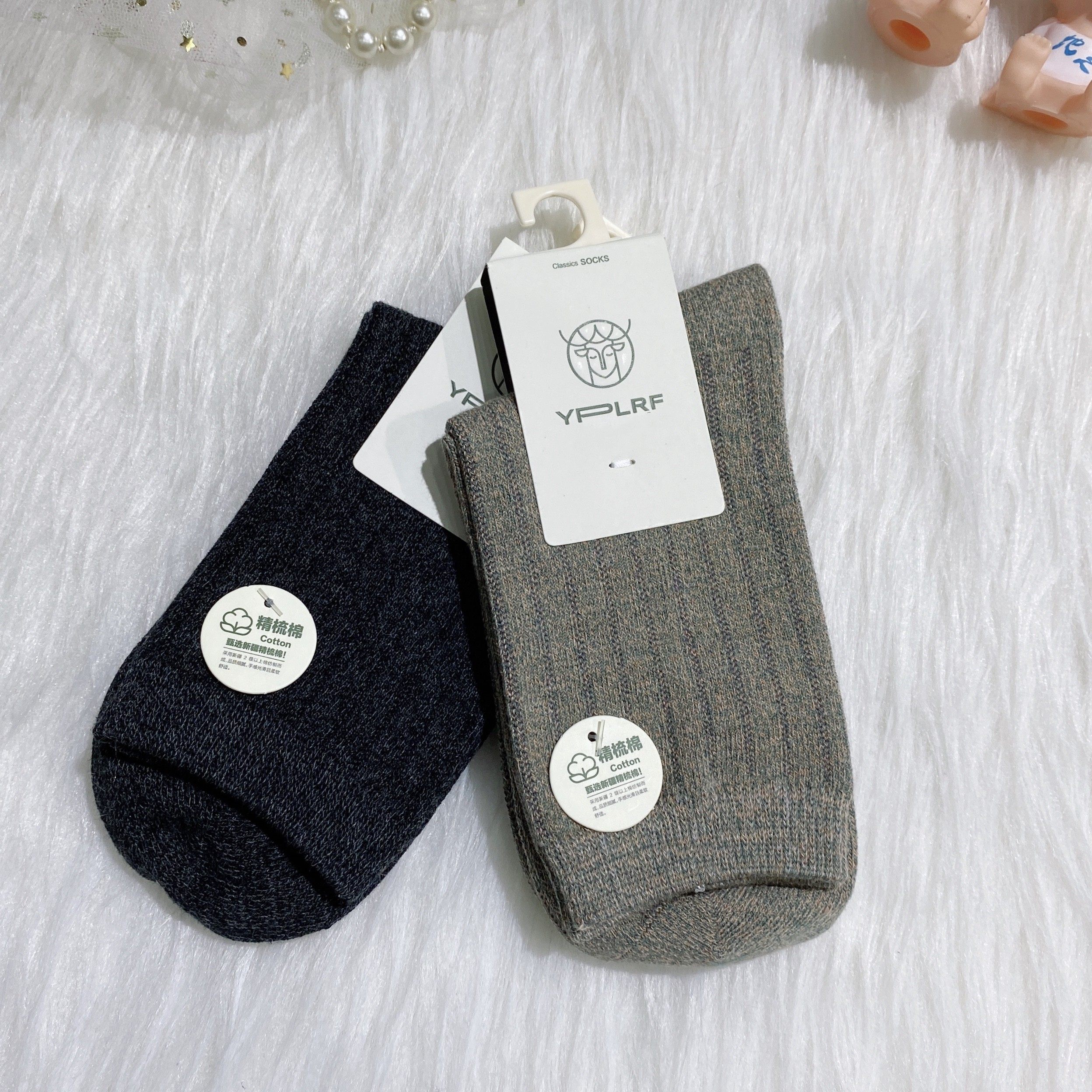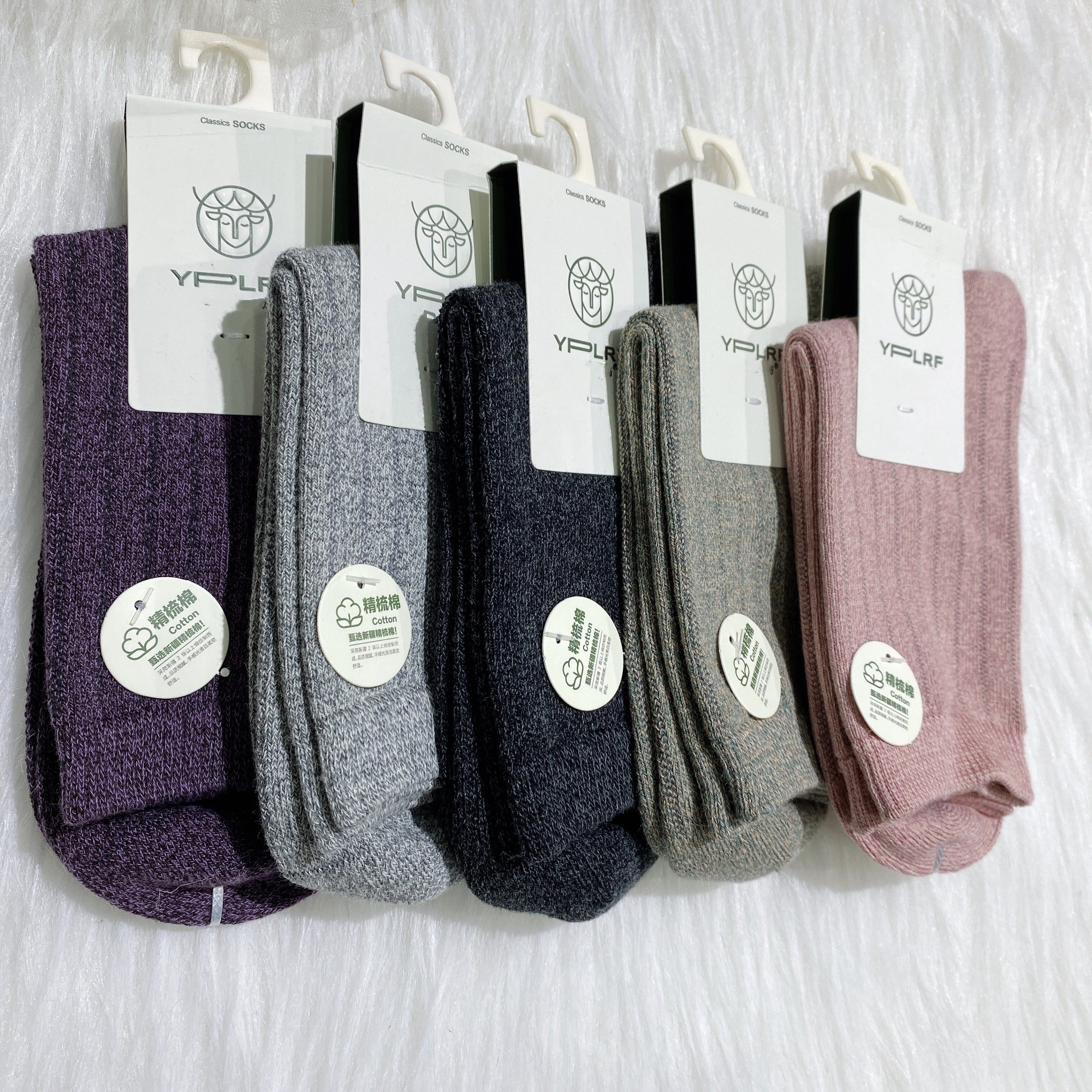 鹿人女士秋冬无骨中厚高筒棉袜子