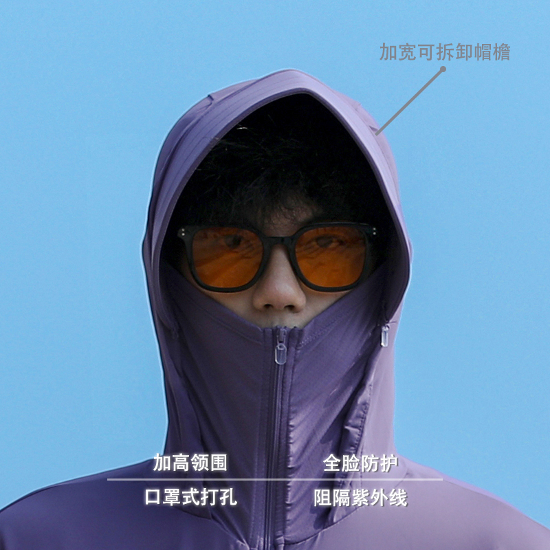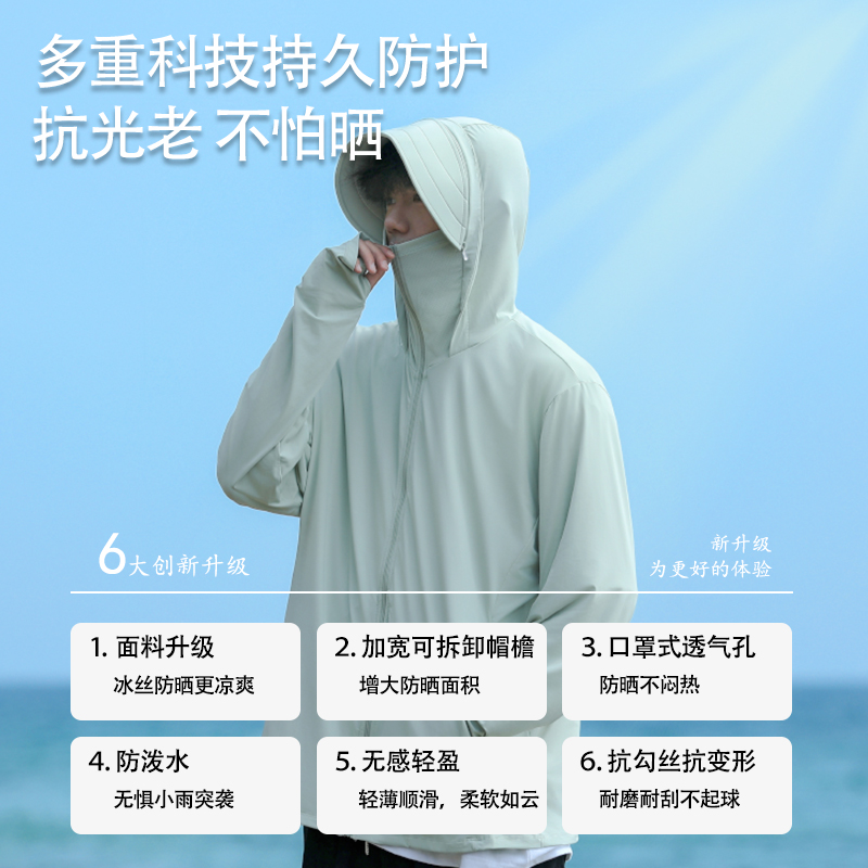 啄木鸟黑色防晒衣男士夏季冰丝皮肤衣青少年可拆帽檐速干防晒服男