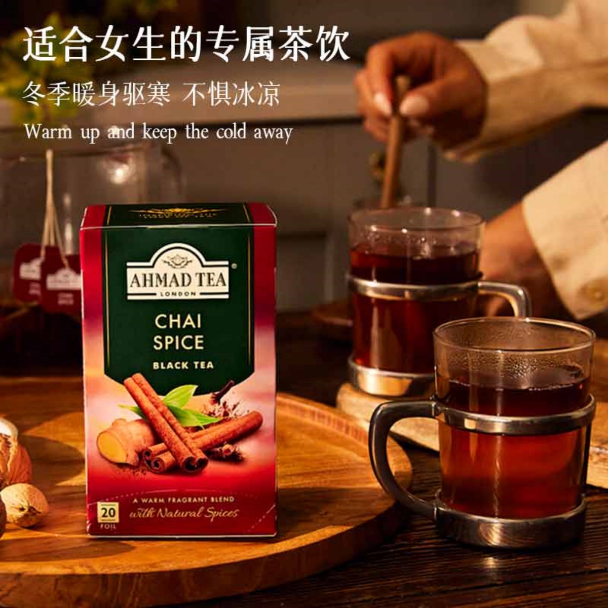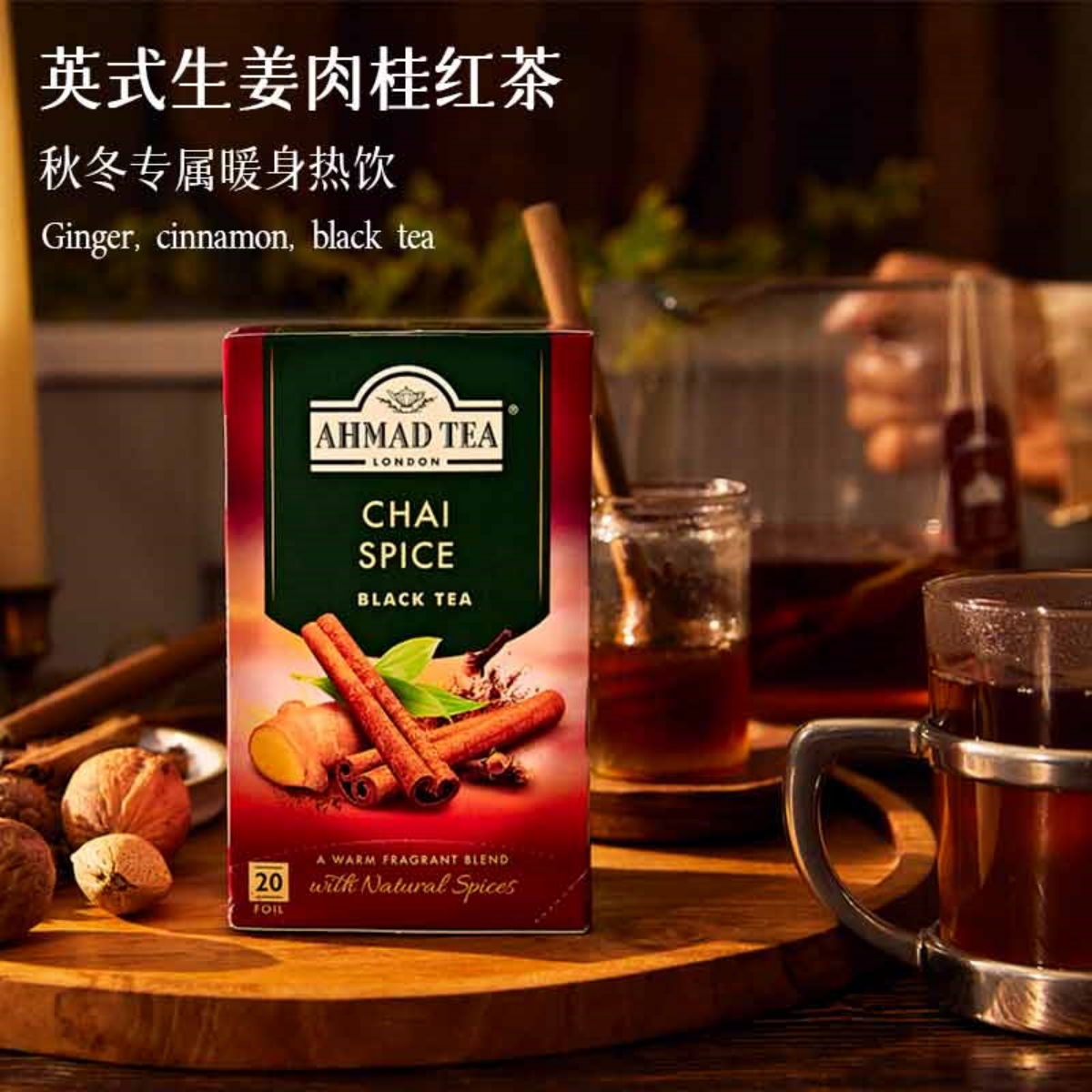 AHMAD TEA亚曼茶进口茶叶生姜肉桂红茶20包袋泡茶女神下午茶包