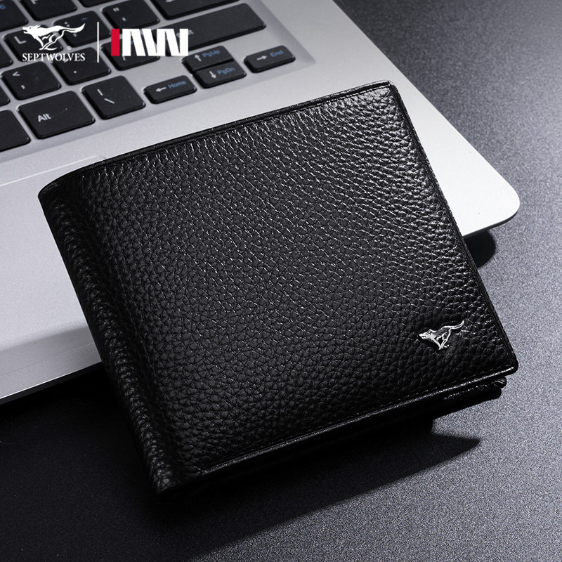 七匹狼钱包男士2026新款真皮短款牛皮皮夹生日礼物送男友爸爸钱夹
