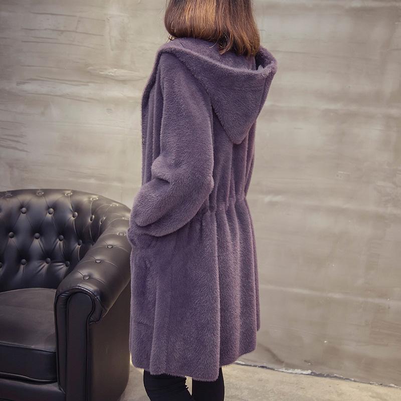 秋冬季仿水貂绒大衣女开衫韩版连帽宽松中长款慵懒风毛衣外套加厚