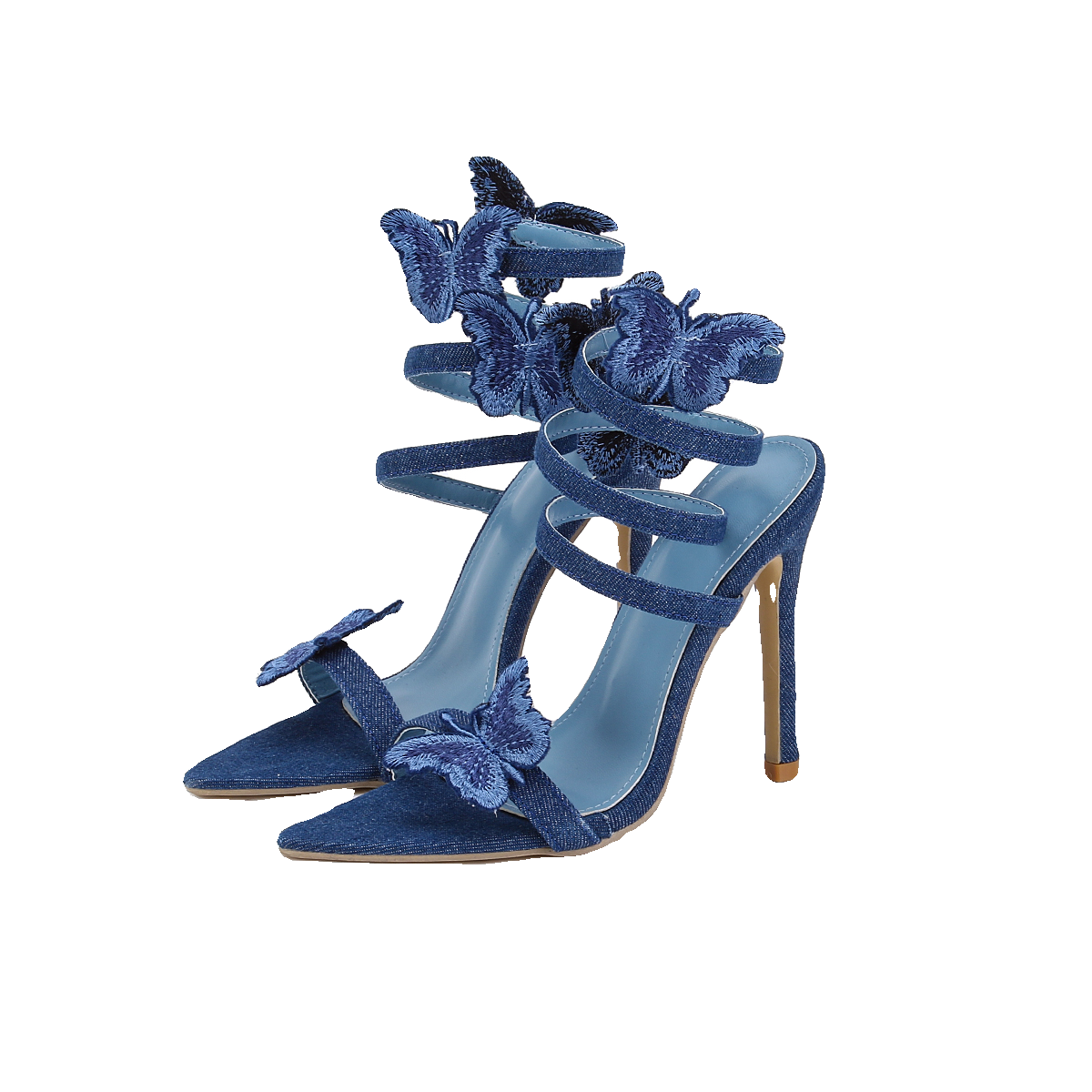 欧美时尚刺绣蝴蝶脚腕缠绕尖头细高跟凉鞋 Lazada Women Sandals