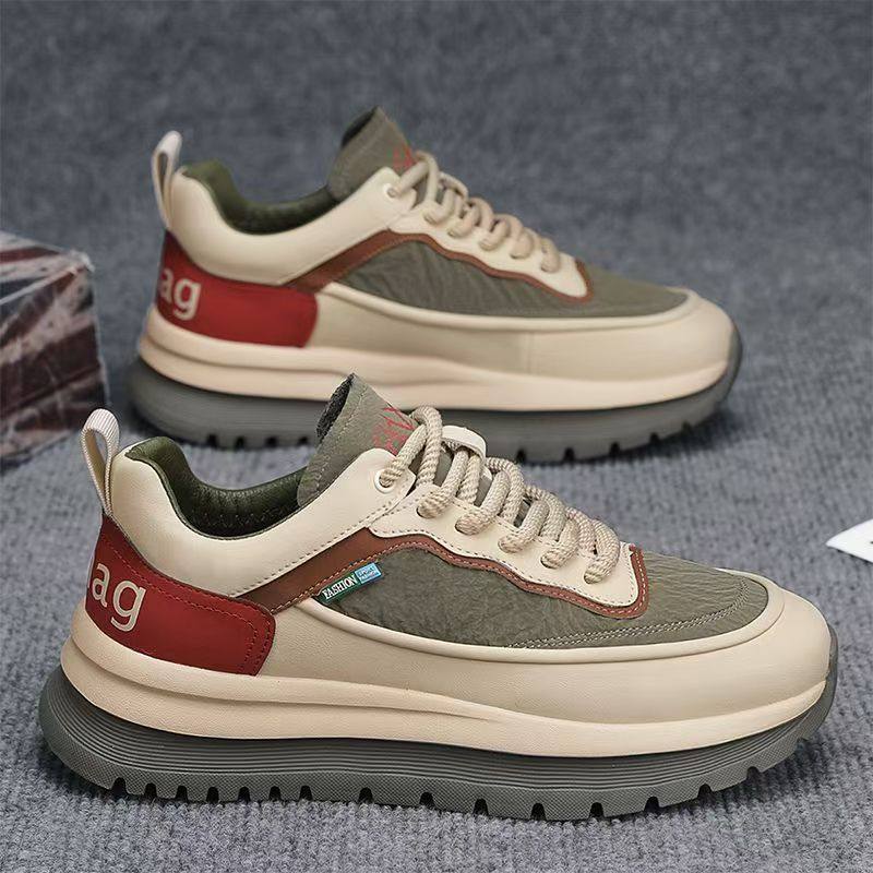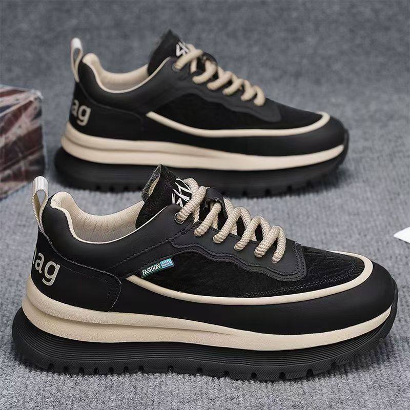 厚底旅游男鞋夏季黑色防水皮面工作劳保鞋男士跑步防滑运动老爹鞋