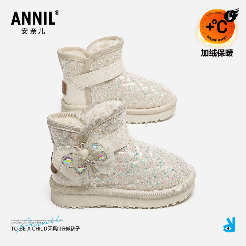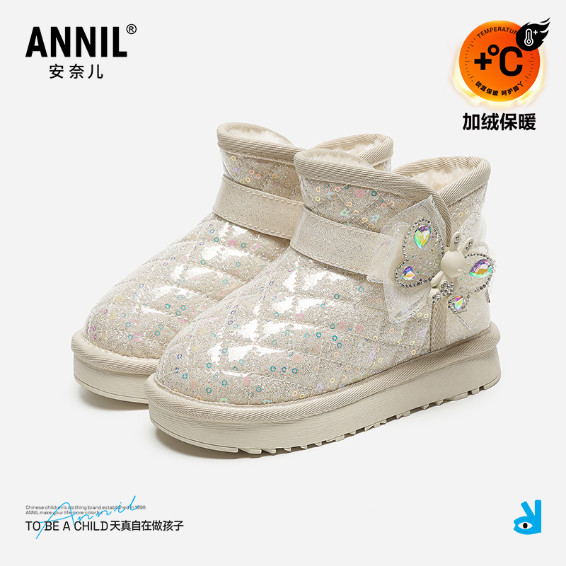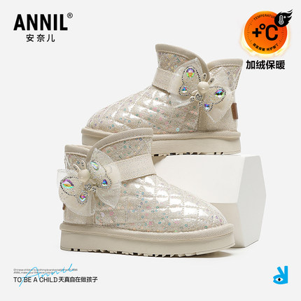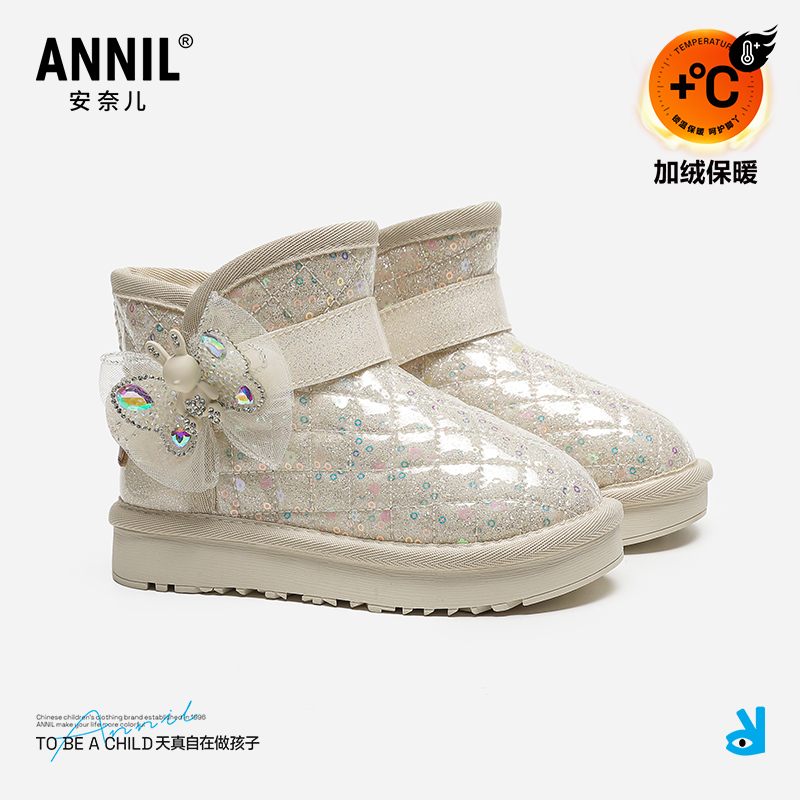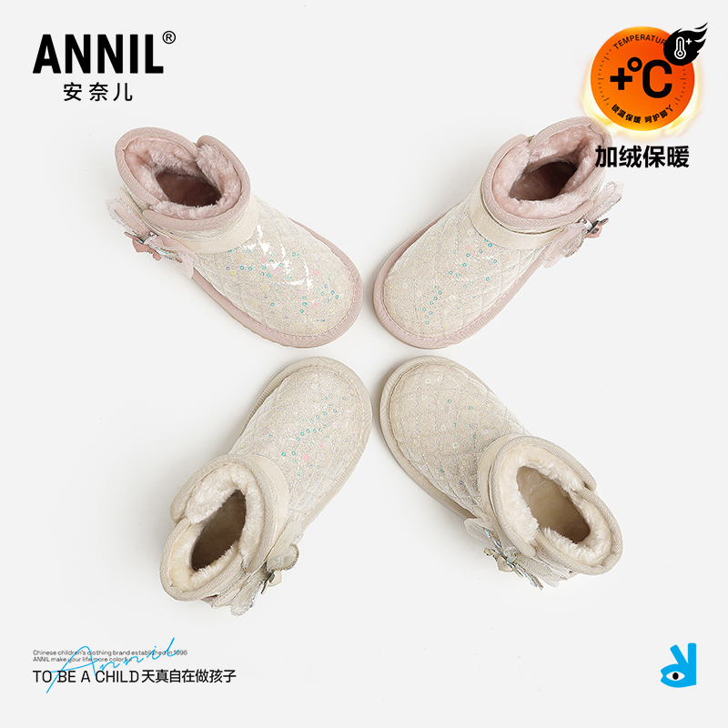 annil安奈儿童鞋儿童雪地靴冬季新款棉靴加绒加厚短靴子女童棉鞋