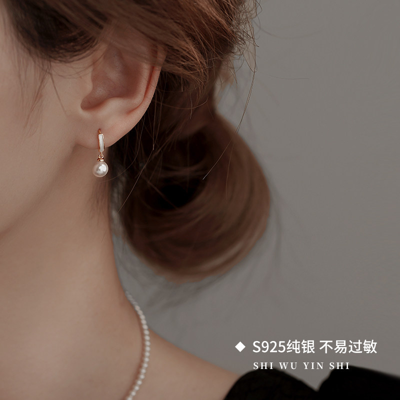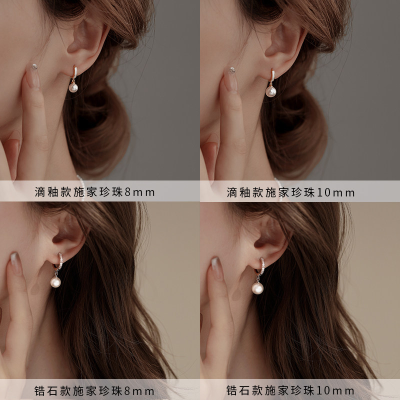 明星同款正圆珍珠925银耳圈