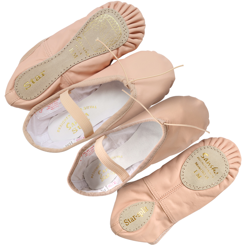 法国三沙儿童芭蕾舞鞋sansha女童肉粉色舞蹈鞋猪皮软底练功猫爪鞋