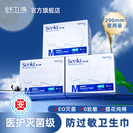 药房正品舒卫康医护级卫生巾290夜用女纯棉防过敏无菌消毒姨妈巾