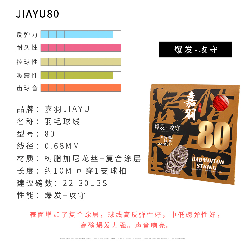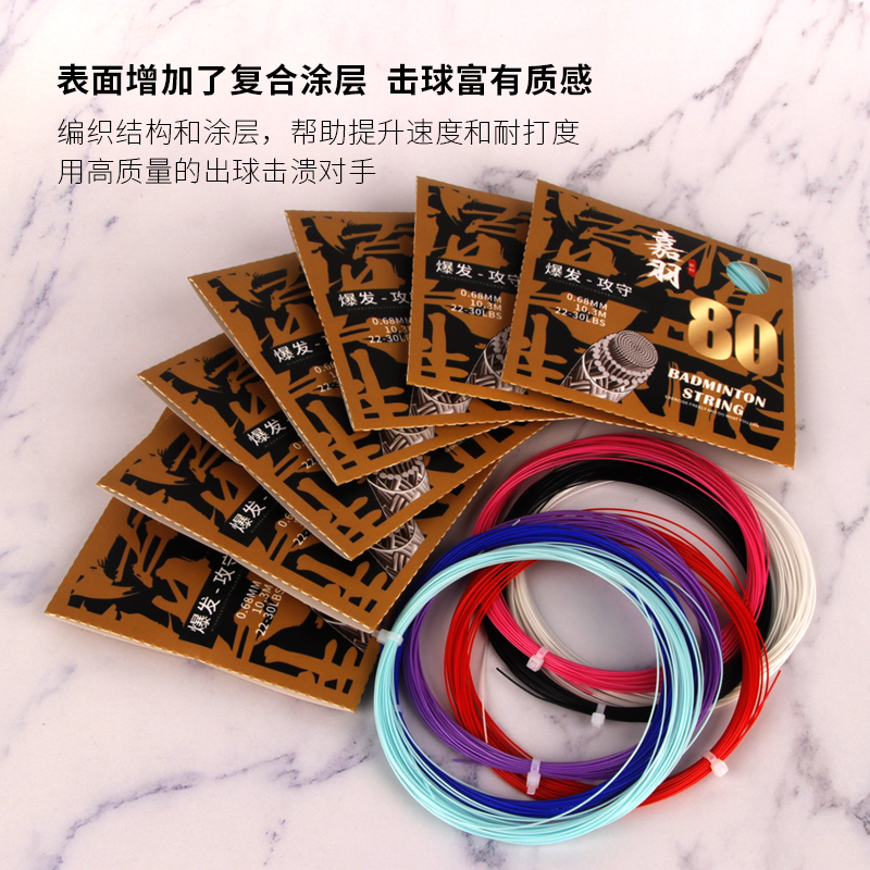 嘉羽JIAYU80号线 支持高磅 高反弹耐久 音效清脆0.68MM羽毛球拍线