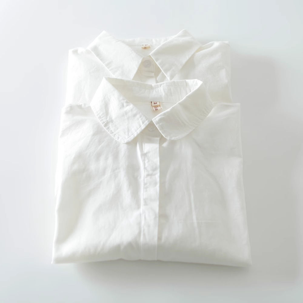 冬季早春100%棉polo长袖白色衬衫女清新学生春秋打底衬衣上衣简约
