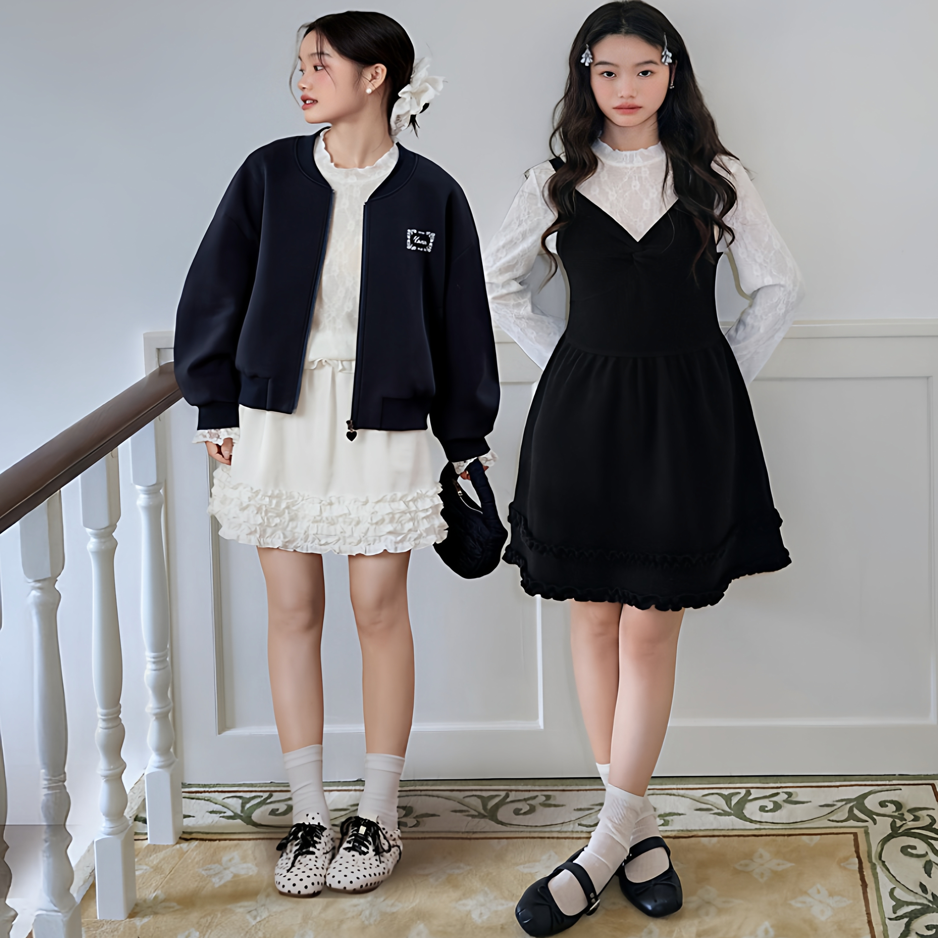 阔扭结连衣裙内搭上衣两件套装吊带裙新25秋冬季女t恤短裙子黑