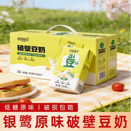 银鹭破壁豆奶250ml原味低糖营养早餐植物蛋白饮料整箱