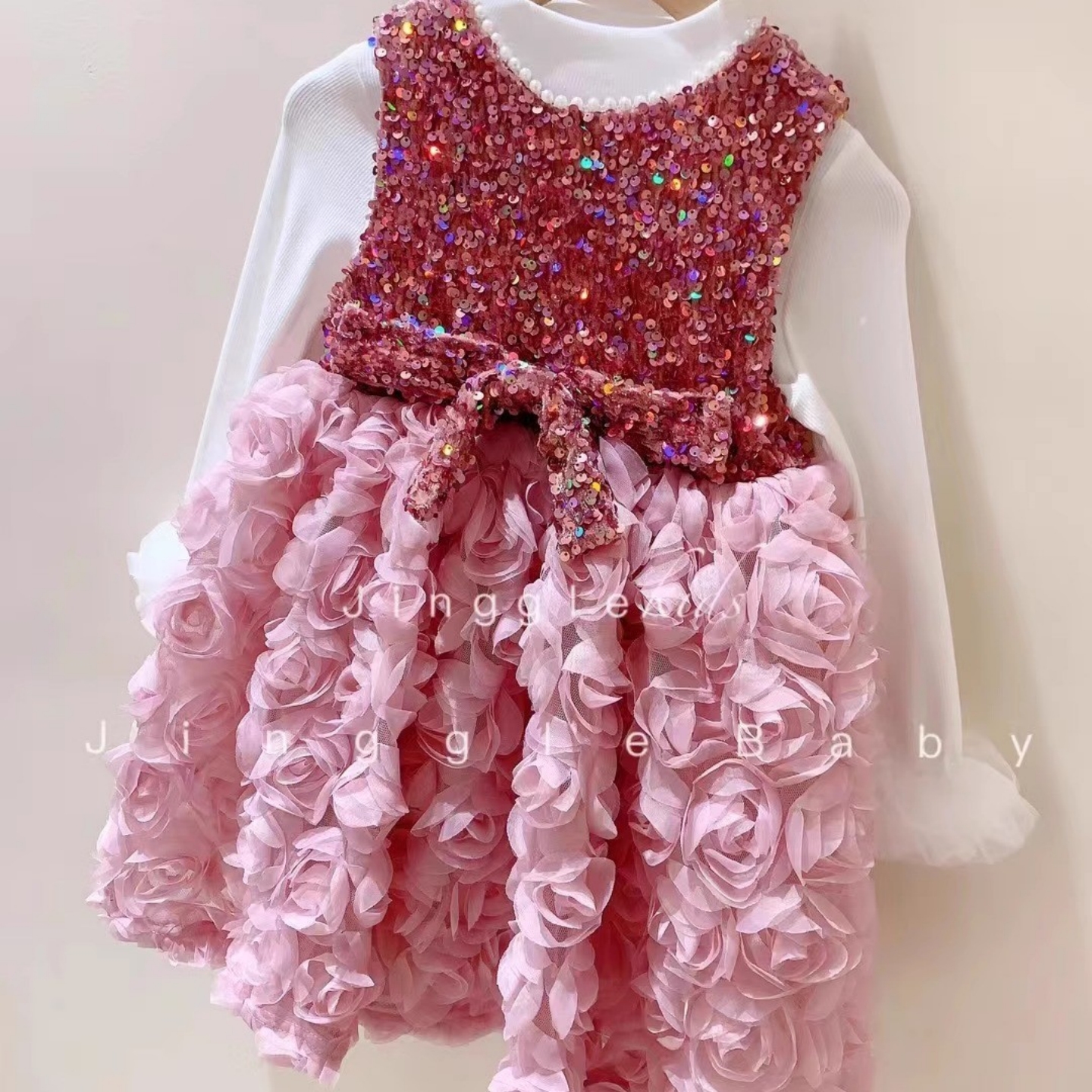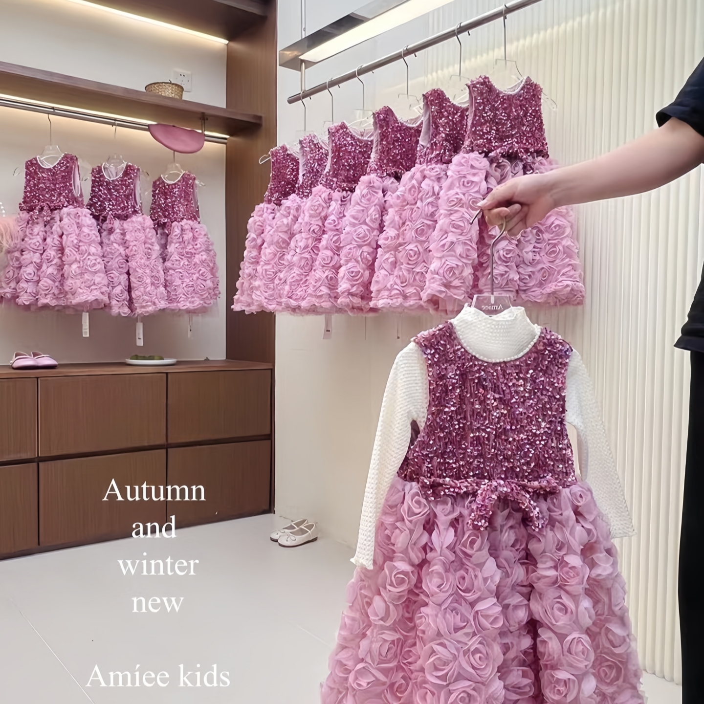 春秋新品童装女童亮片玫瑰花公主裙艾米专柜背心连衣裙生日礼服裙