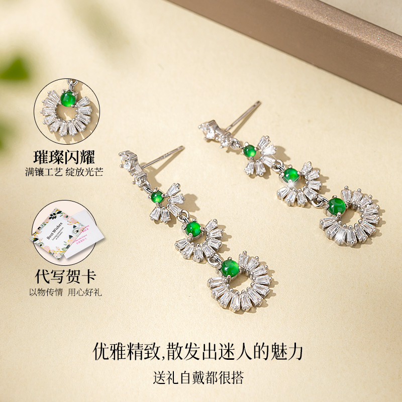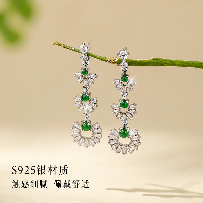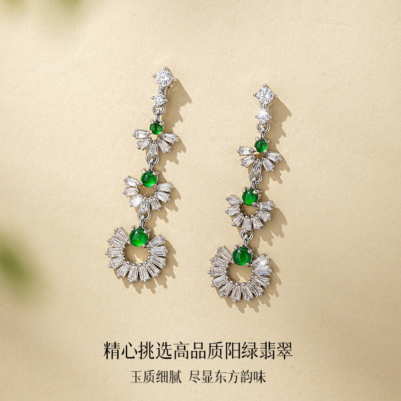 国风冰种天然翡翠耳饰女纯银耳环2025新款高级感轻奢耳坠首饰配饰