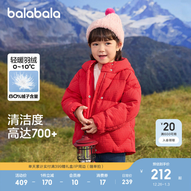 巴拉巴拉童装儿童羽绒服女童冬装连帽保暖外套萌上衣舒适户外潮款