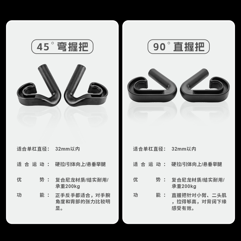 KCROSS钩型健身把手多功能健身握把引体向上硬拉划船力量训练器械