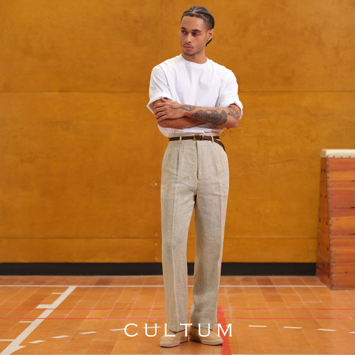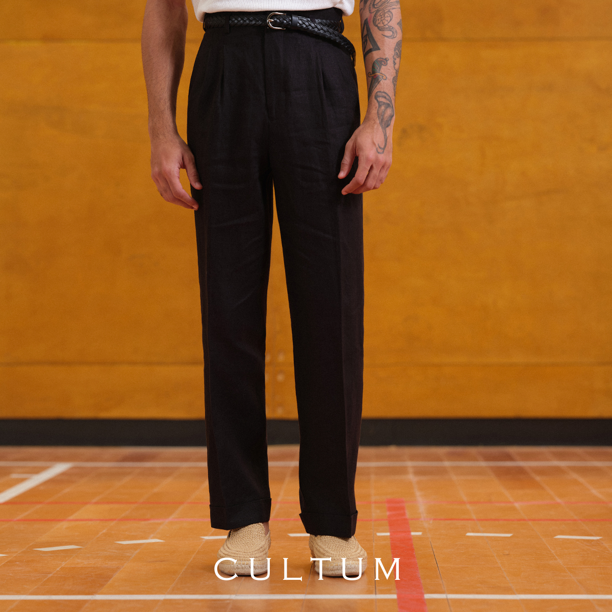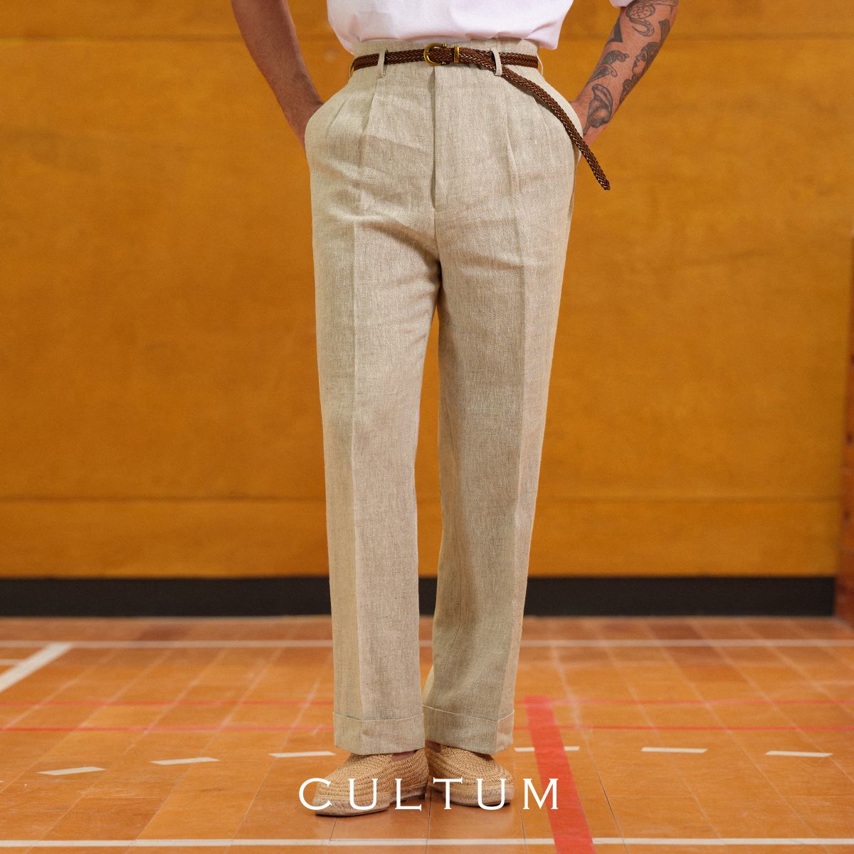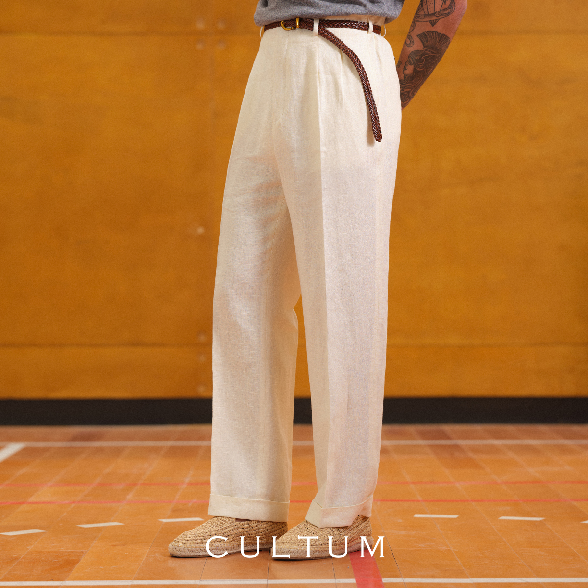 CULTUM法国重磅亚麻双褶高腰好莱坞裤子西裤男直筒休闲长裤
